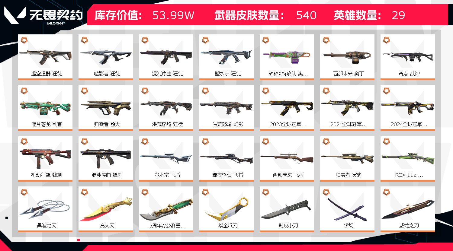 • 皮肤资产价值: 539925