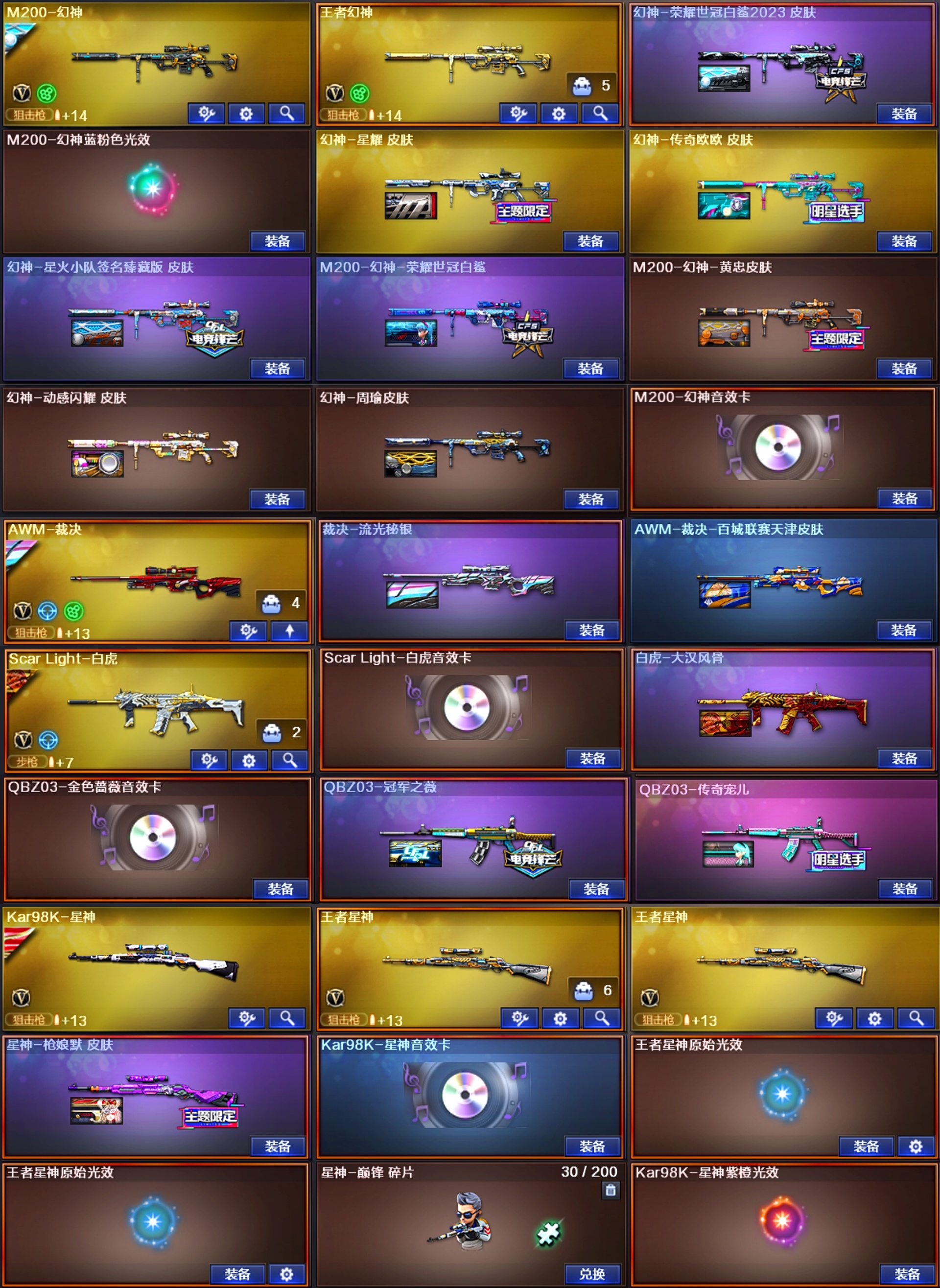 传说女帝幽瞳幻影♥幻神音效卡9皮白鲨欧欧星火♥裁决流光星神音效卡1皮♥白虎1皮蔷薇2皮带卡5柯尔特