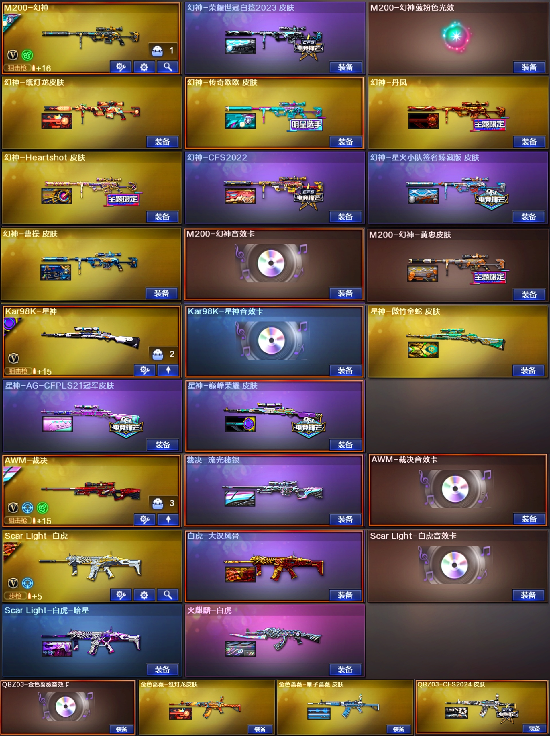 幽瞳幻影银翼幻神小狮子♥幻神音效卡10皮星火白鲨♥裁决音效卡流光♥白虎大汉蔷薇2024皮♥6柯尔特