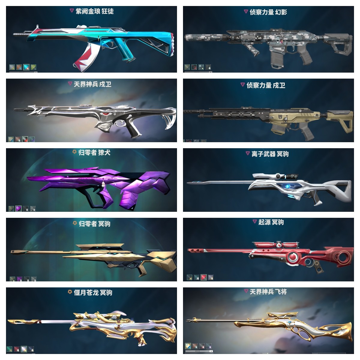 【拥有狙击枪】偃月苍龙-冥驹,离子武器-冥驹,荒土机兵-冥驹,沙尘幻旅-飞将,合金战车-飞将,末日之翼-飞将,星云暗涌-冥驹,月球哨兵-莽侠,战术熊与伙伴们-飞将,纤云弄巧-莽侠,胡桃狂想-冥驹,信手涂鸦-飞将,花漾粉红-冥驹,
