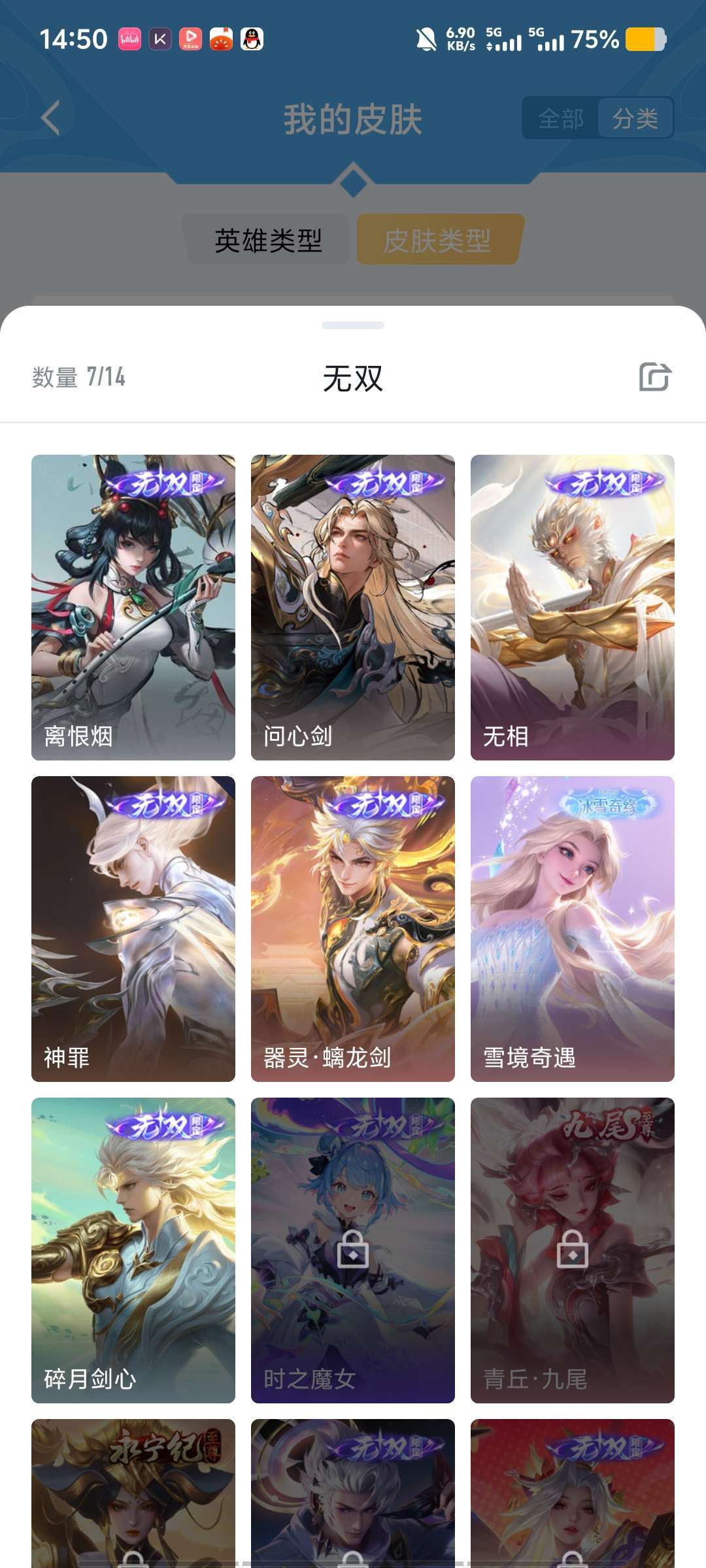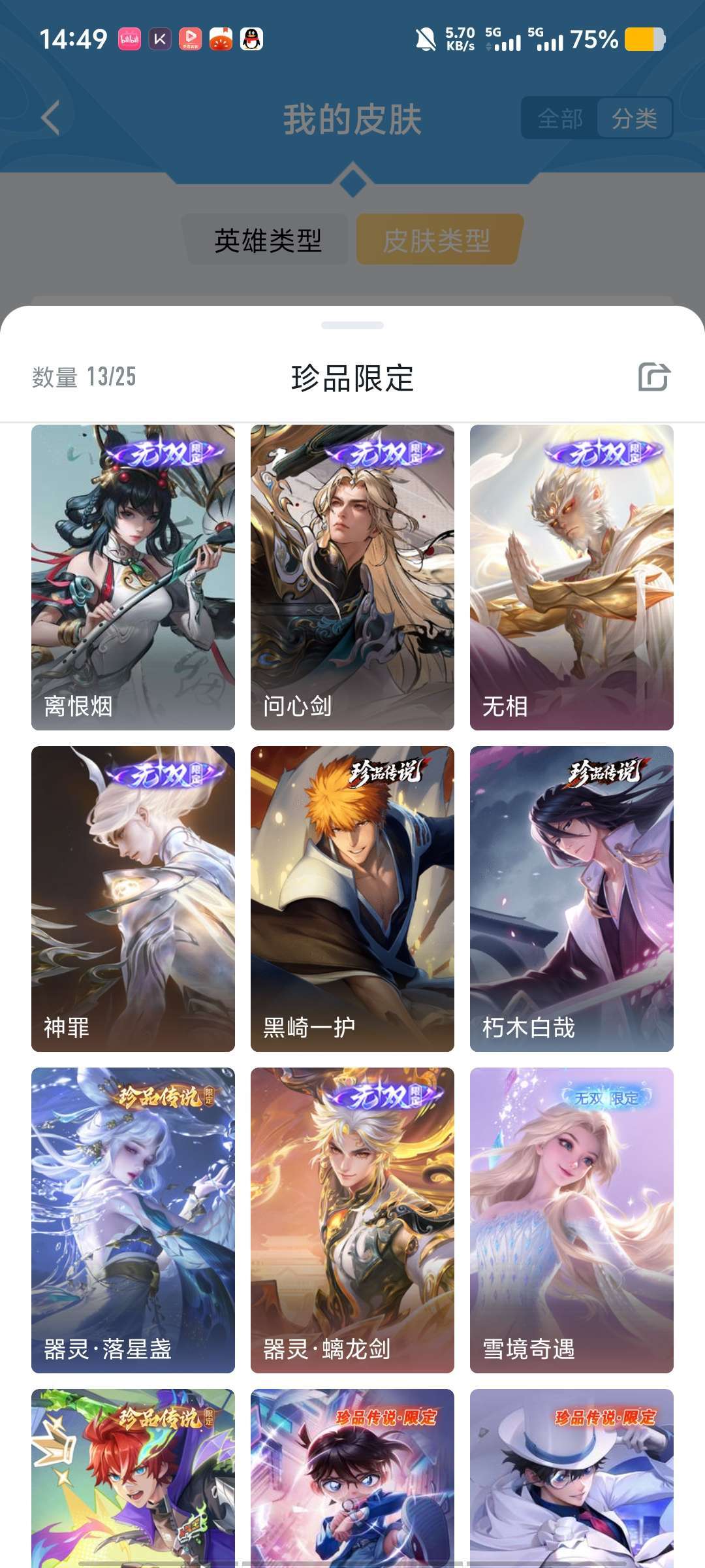 v10、12水562皮、死亡执政官、刘备星传说时之思念、小兵皮肤大耳狗甜茶、瑶无双真我赫兹、愿照·九州拓、怪盗基德、画中仙、至尊宝、凤求凰、神威、天魔缭乱