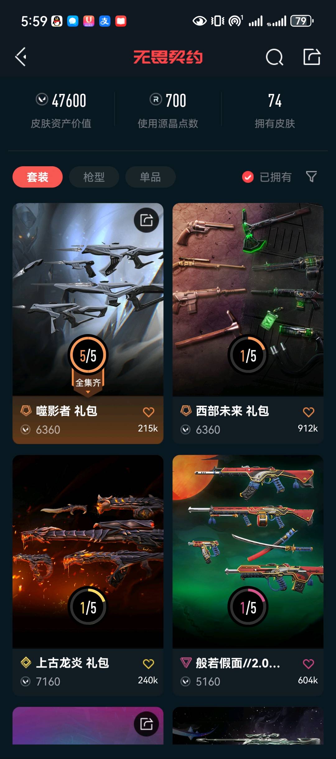 • 皮肤资产价值: 47600