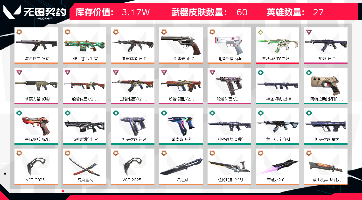 • 皮肤资产价值: 31700