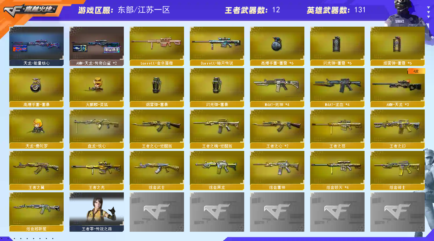 此账号和平台属于合作关系,已经备案。如果账号封号或者什么的,商户将会协助平台然后报警。 收藏好评!由于异地登录保护机制,部分客户在使用客户端自动上号时会出现密码错误,注意本号密码不会错误,请多尝试5-6次!本账号已经过虚拟财产-认1证。请素质租号,文明游戏,谢谢大家配合!!!;炽芒蝶刃,RPK-盘龙,QBZ03-金色蔷薇,G36C-幻影,M200-幻神,Scar Light-白虎,