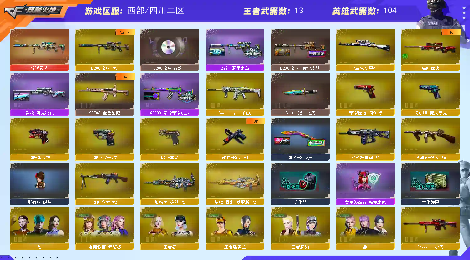 传说灵眸+王者风神+幻神+冠军之幻黄忠幻音❤usp雷暴+柯尔特2+cop2+星神+白虎6烈斯太尔蝴蝶