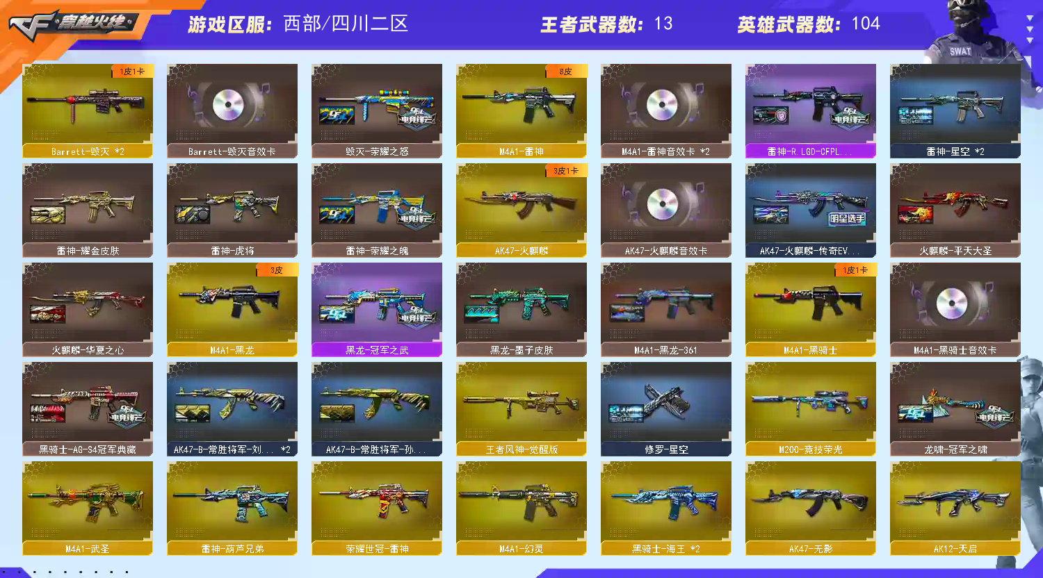 首页 > 租号大厅 > 穿越火线 > 电信区/四川二区 > 传说灵眸+王者风神+幻神+冠军之幻黄忠幻音❤usp雷暴+柯尔特2+cop2+星神+白虎6烈斯太尔蝴蝶