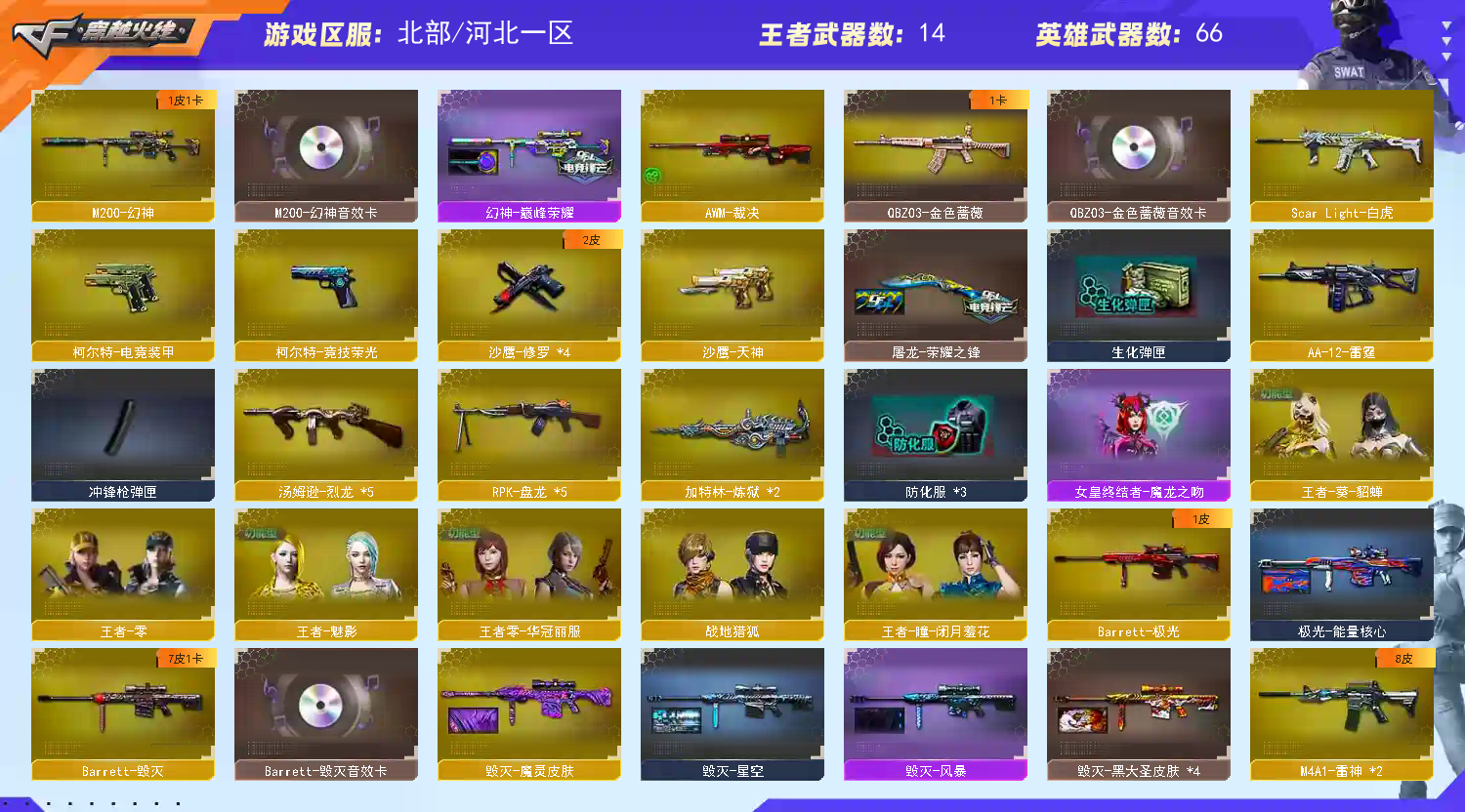 亲:订单完成后记得收藏好评哦么么哒!!!;RPK-盘龙,QBZ03-金色蔷薇,M200-幻神,Scar Light-白虎,