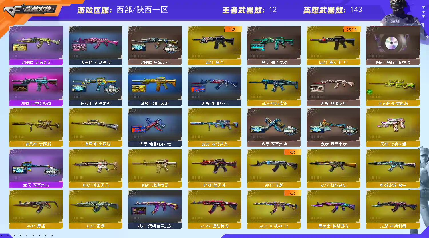 • 游戏区服:穿越火线 / 电信区 / 陕西一区