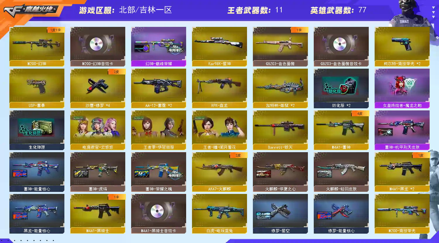 • 游戏区服:穿越火线 / 网通区 / 吉林一区