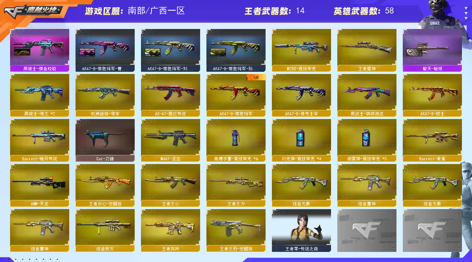 • 游戏区服:穿越火线 / 电信区 / 广西一区