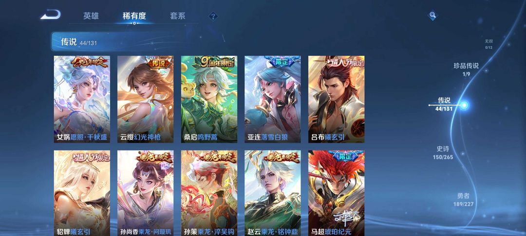 v10、12典藏520皮、马超无双飞将、韩信典藏、马可深海之熄、瑶珍品传说大耳狗之梦、青丘·九尾、枫霜尽、绯月行、前尘镜、至尊宝、天魔缭乱