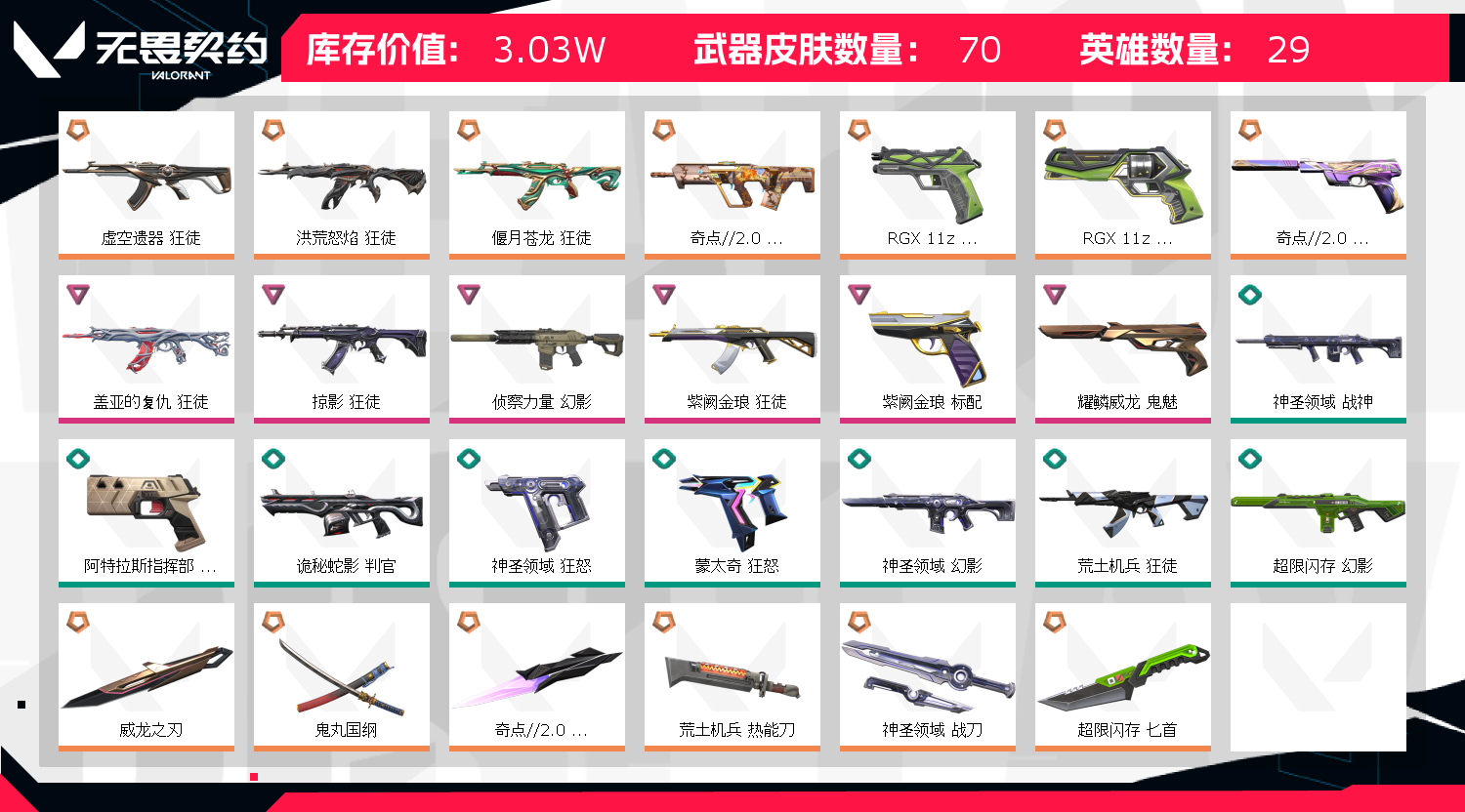 • 皮肤资产价值: 30300