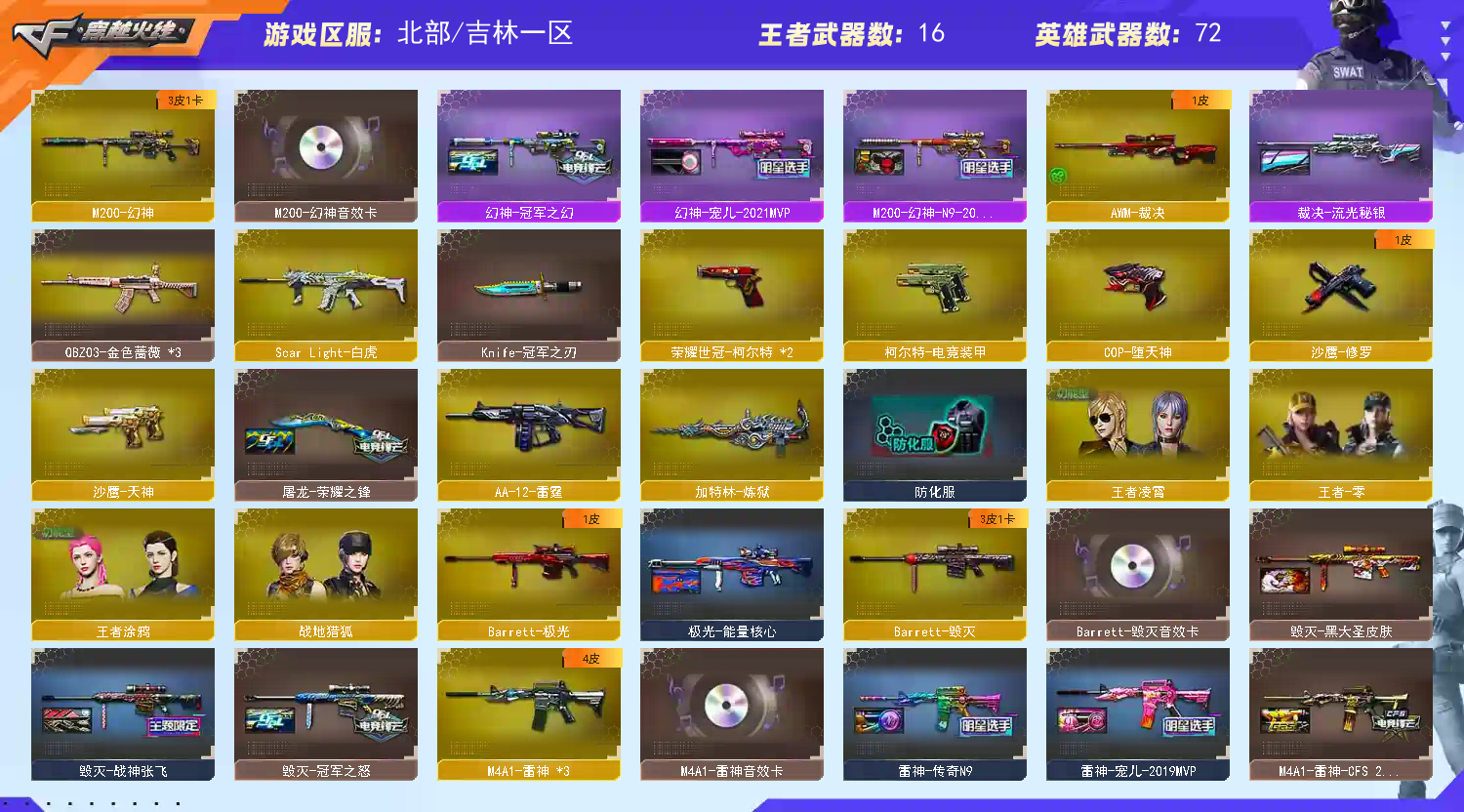 75v 幻神+宠儿+N9+冠军之幻+音效✨王者星神✨冠军之刃✨白虎✨金色蔷薇/朱雀/荣耀世冠套/COP-堕天神/毁灭-冠军.2018.战神张飞.AG冠军+音效/雷神-宠儿.传奇N9.2019+音效/火麒麟-华夏之心.STAR.轻羽.心动糖果+音效/黑骑士-冠军.AG冠军典藏+音效/黑龙-冠军+音效/云海玲珑/王者凌霄.涂鸦/樱-缤纷夏日等;荣耀世冠-柯尔特,Knife-冠军之刃,QBZ03-金色蔷薇,M200-幻神,Scar Light-白虎,