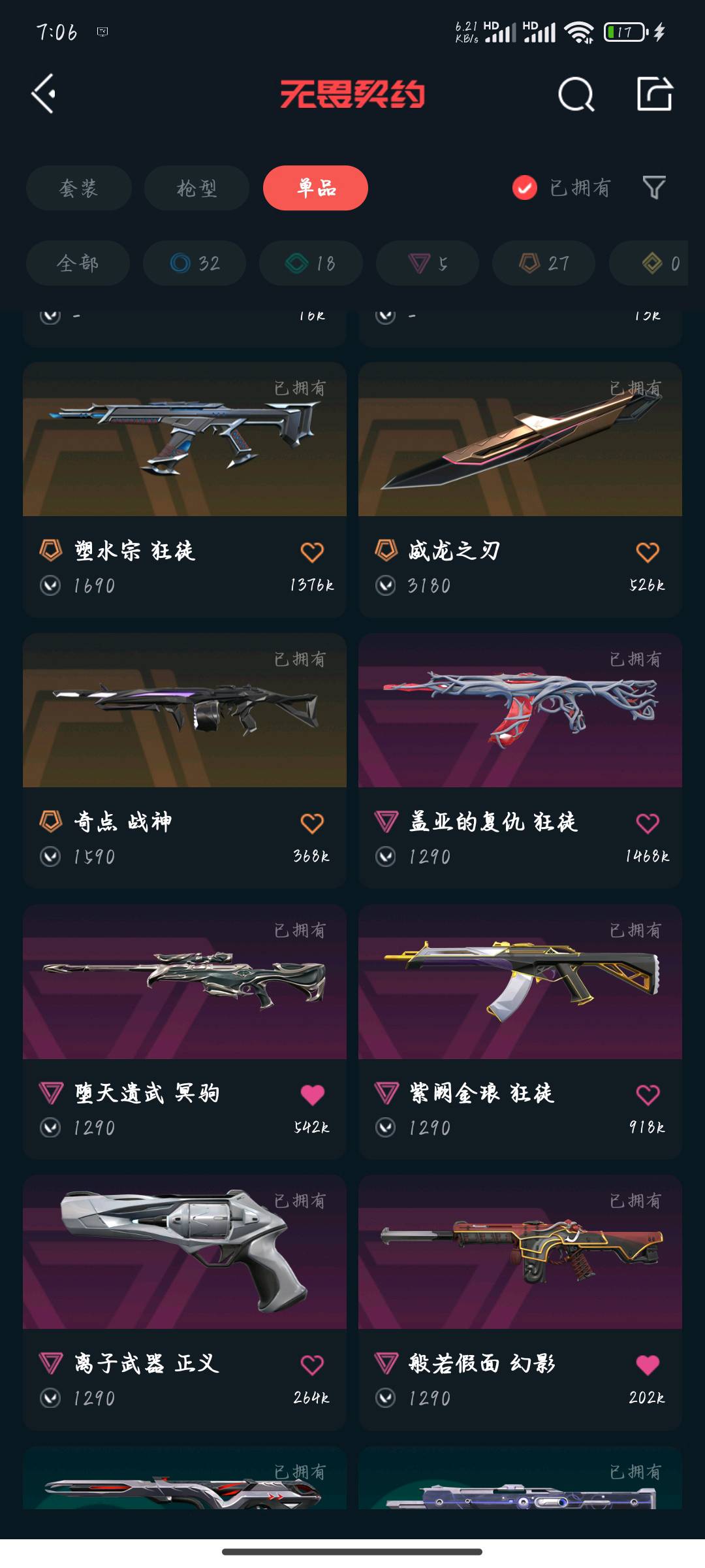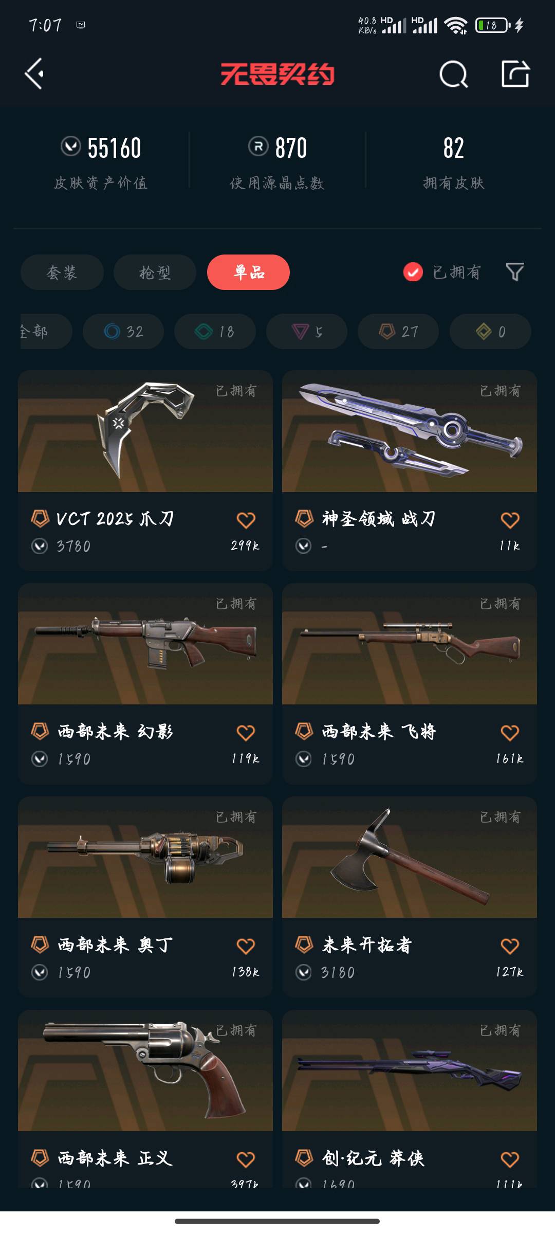 可排位 英雄27 武器皮肤数量82;西部未来 奥丁,奇点 战神,镭切,威龙之刃,VCT 2025 爪刀,盖亚的复仇 狂徒,紫阙金琅 狂徒,