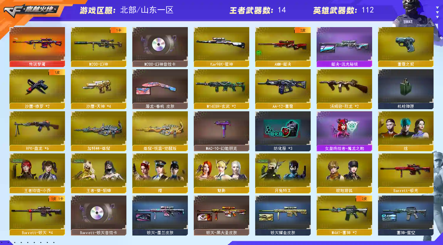 可打字❤️M200幻神+幻神音效卡❤️98k星神王者白虎王者芳薇⑥盘炼狱+③烈龙雷神宠儿④音效卡