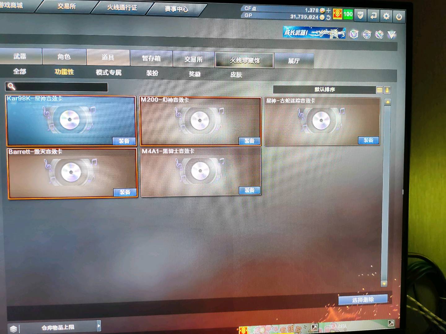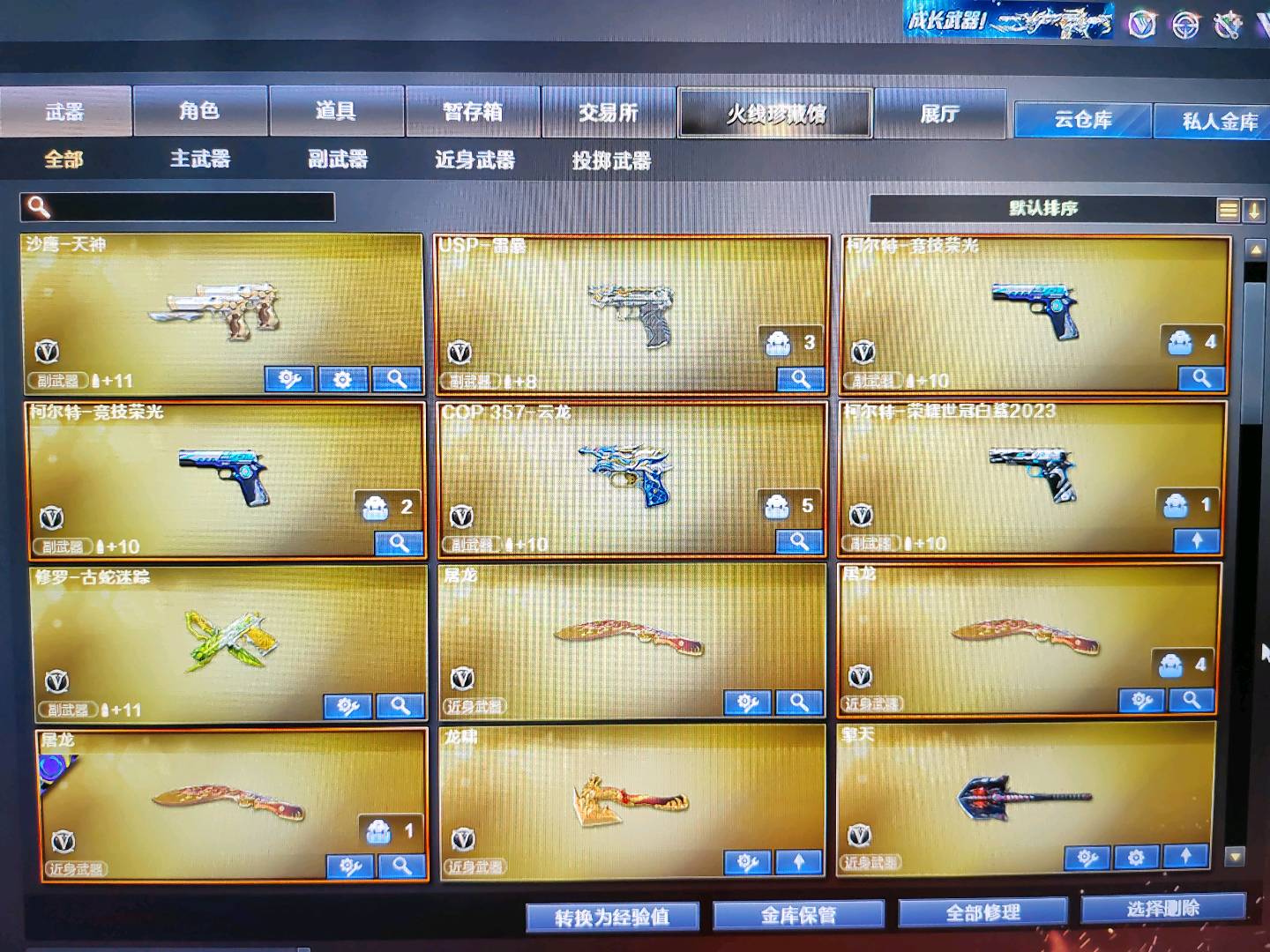 四防角色,皮肤,幻神98k带音效;USP-雷暴,柯尔特-荣耀世冠白鲨2023,电竞教官-云悠悠,QBZ03-金色蔷薇,M200-幻神,Kar98K-星神,