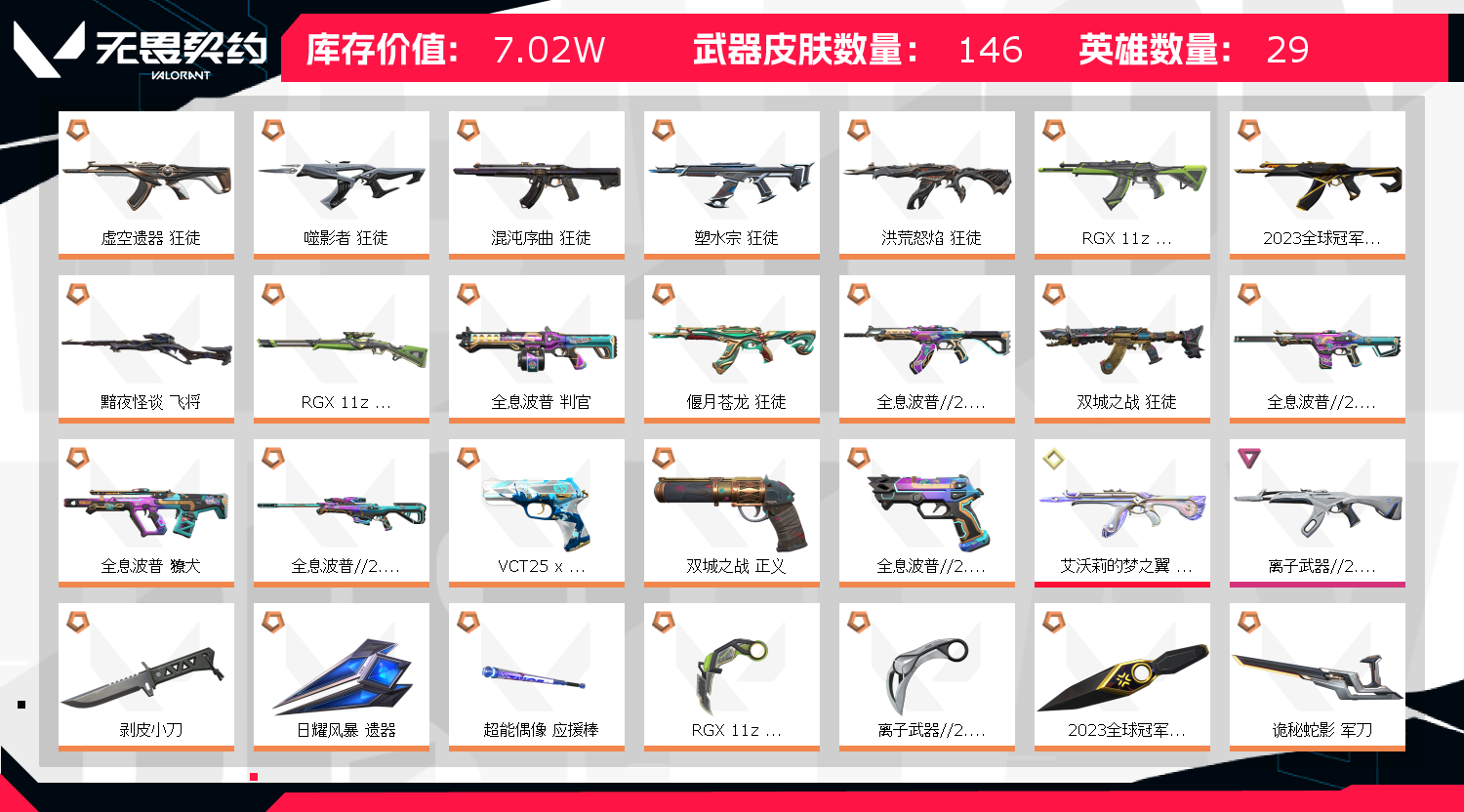 • 皮肤资产价值: 70230