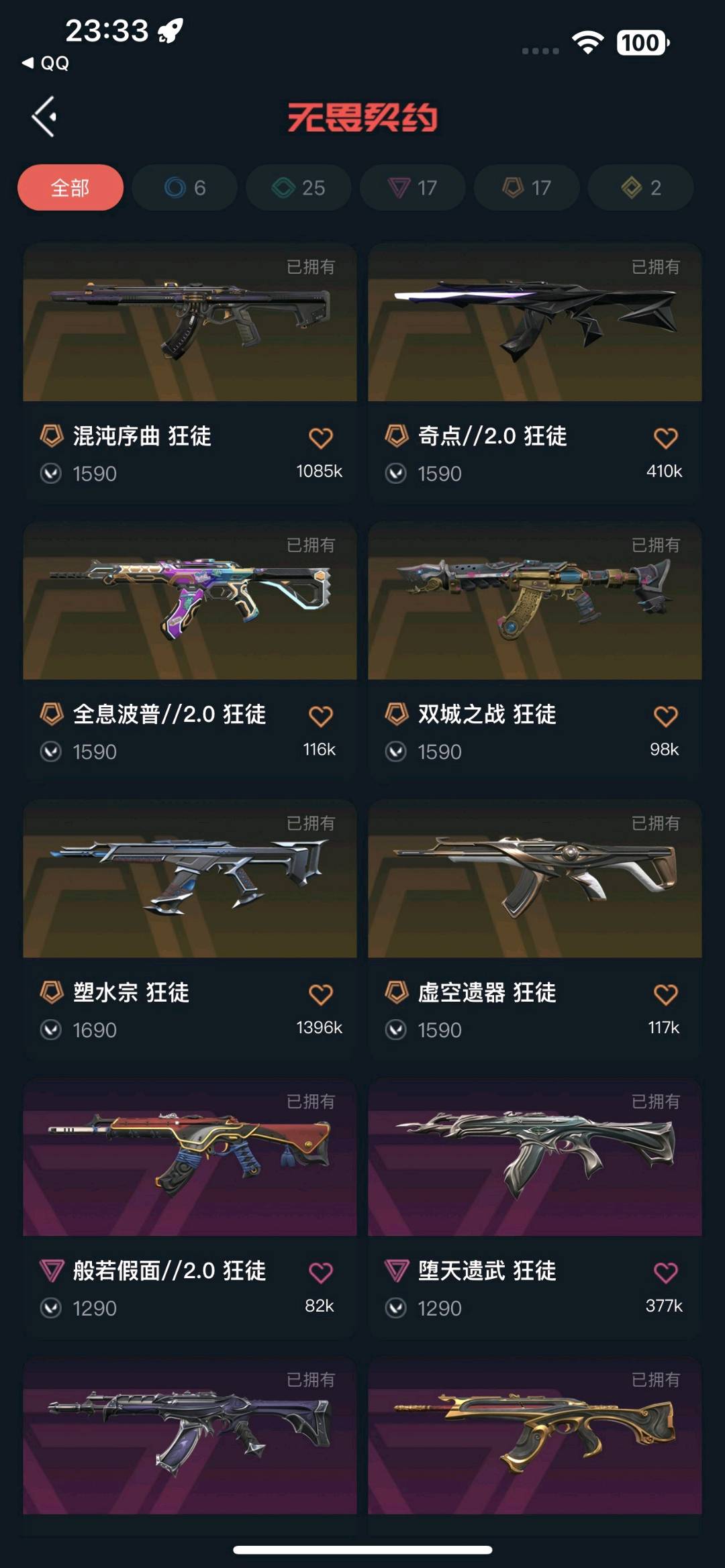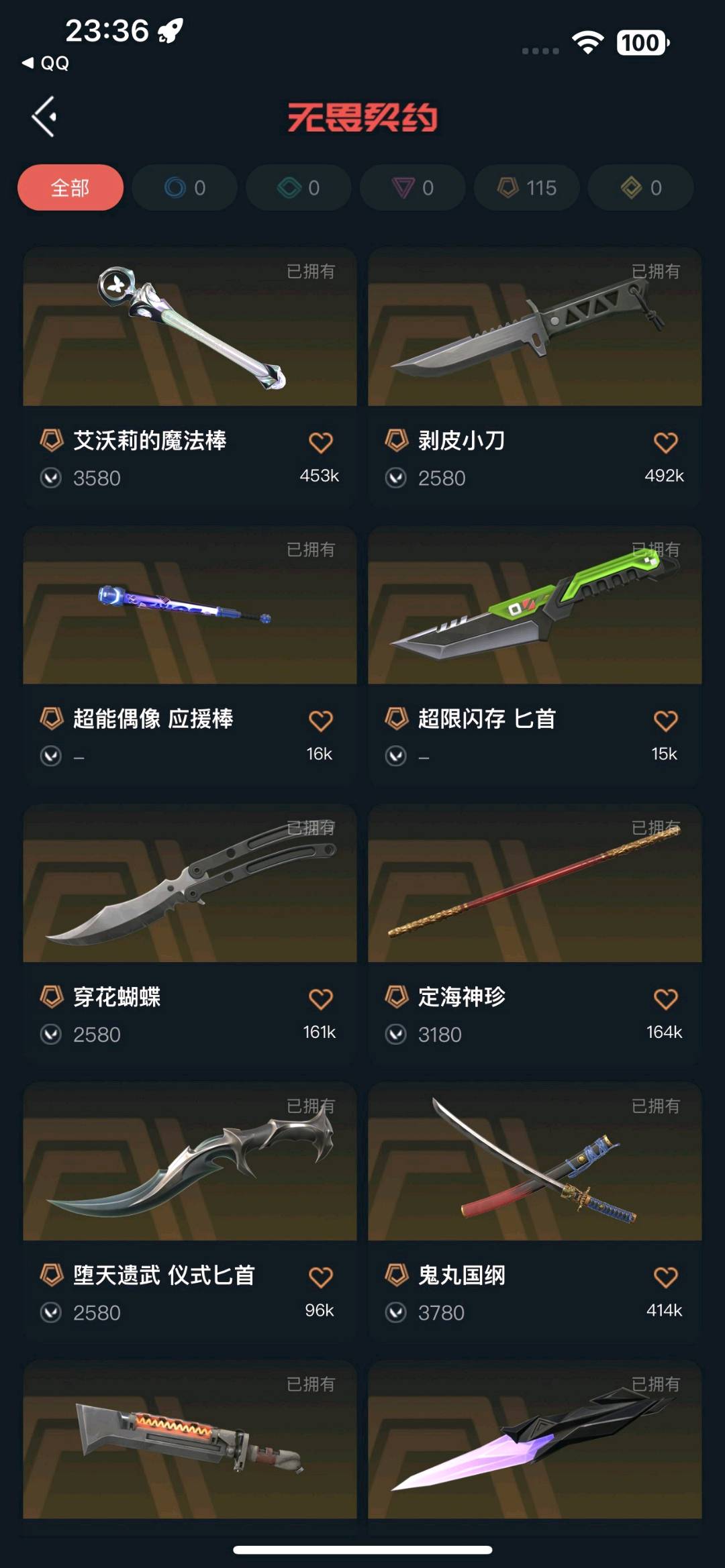 1;奇点 战神,剥皮小刀,VCT 2025 爪刀,天界神兵//2.0 幻影,归零者 獠犬,盖亚的复仇 狂徒,虚空遗器 狂徒,
