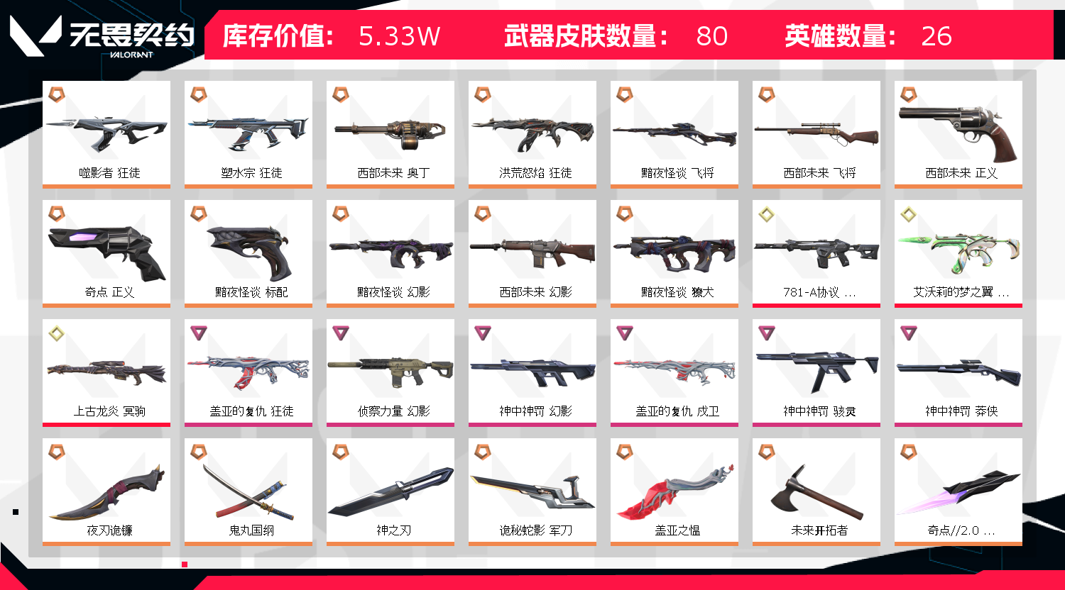 • 皮肤资产价值: 53260