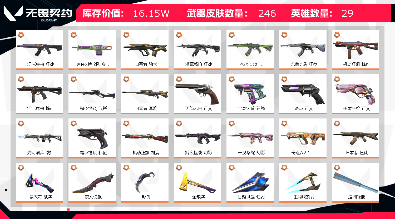 • 皮肤资产价值: 161535