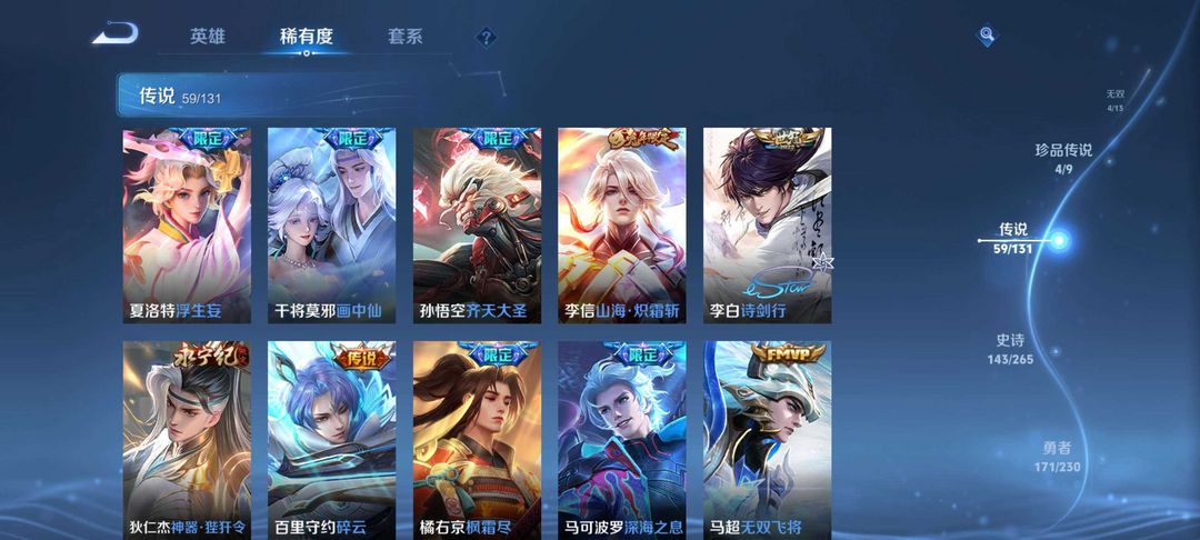 上不去看最后一张图游戏名字长租扫码上号无双贵族10,年限全满极736皮猴子无双无相,满珍品,11无双,10典藏,神威,炽阳神光,还有许多极品皮肤看图皮肤