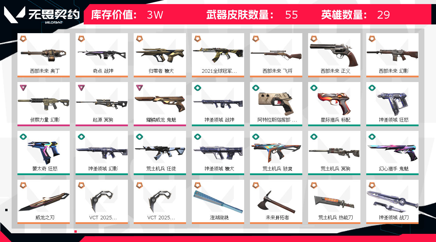 ⭐️遇到无法登录等问题及时去号主通道加急处理 恶意退排位恶意无理由撤单一律黑名单 【店铺所有账号均于德州市网监局备案虚拟财产,开挂/鼠标宏/恶意卡BUG等毁号行为,直接联合本平台提供详细信息邮寄律师函!必追责原价赔偿!;西部未来 奥丁,奇点 战神,威龙之刃,VCT 2025 爪刀,归零者 獠犬,侦察力量 幻影,2021全球冠军赛 狂徒,