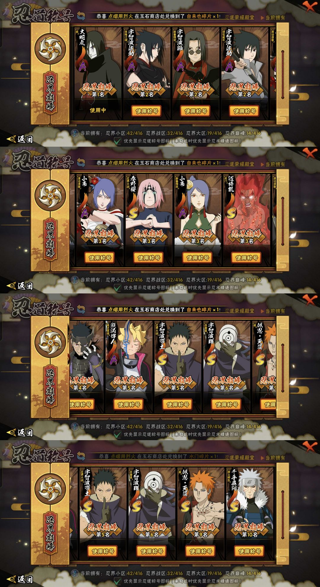 国一晓蛇 国二侠隐佐助,新春鼬,骨架 国三漂泊小南,忍战樱,新春小南,死门凯 国四漂泊带土 国五破面带土,桃博 国六白面具 国九天超 国十死二代 1⃣登录须知: 【***APP上启动游戏,如果登录遇到秒挤号现象,是因为上位租客未下线导致,请等待一两分钟后再启动游戏,即可正常登录,希望租客大大多多理解。】 2⃣账号详情: 【安卓634区,战斗力2600万,攻击力300万,45S70A共300忍者,秘卷全有,霸体散等热门密卷都是满级效果,热门通灵有熊猫蛞蝓守鹤怒鬼二尾螃蟹等,具体请查看截图。】 3⃣欢迎评论: 【朋友们请文明游戏,不要恶意撤单、消耗账号道具或者非法游戏等,有任何问题欢迎留言反馈,我们一定会有则改之无则加勉,祝你们游戏玩得开心。】