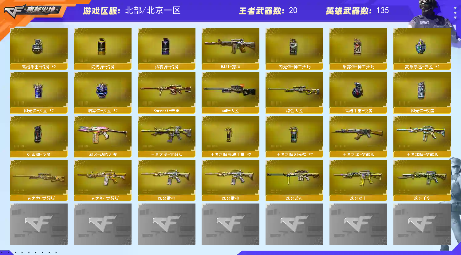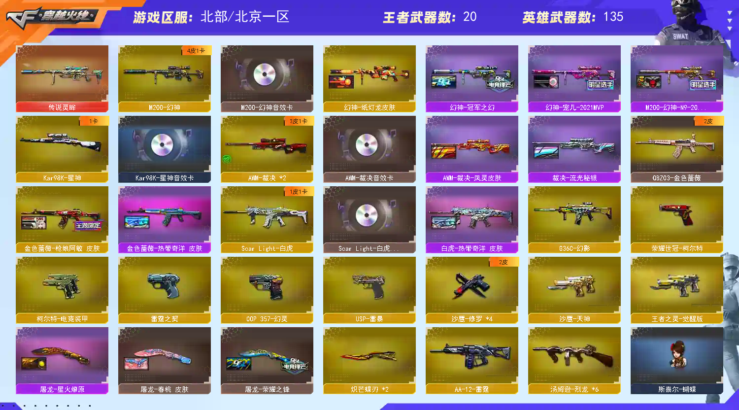 >>>>>>毁号,涉及毁坏虚拟财产罪及计算机安全罪,请文明游戏素质游戏,让我们共建美好租号平台>>>>>> 本游戏账号:英雄武器135个; 王者武器17个。 装备不多,但是主武器、副武器、近身武器够用 拥有完美游戏体验。重要的是,特殊装备有:麒麟刺、USP-雷暴、黑骑士-海王、AK47-火麒麟、HK417-朱雀、加特林-炼狱、M200-幻神、传说灵眸、荣耀世冠-龙啸、荣耀世冠-柯尔特、荣耀世冠-雷神、炫金天龙、炫金骑士、王者之锋-觉醒版、炫金毁灭、王者冰魄-觉醒版、王者之势-觉醒版、王者之城、炫金雷神、王者之力-觉醒版、魅影、迷迭香、职业选手、王者-瞳-闭月羞花、雪莉杨、王者-葵-貂蝉、堕天使、王者之啸金色光效、生化弹匣、M4A1-雷神音效卡、M200-幻神音效卡、等,随意畅选。 注意事项: A.游戏过程中请不要恶意挂机或者不文明发言 B.恶意挂机、顶号等行为将被拉黑无法再次下单 C.进入游戏后中途请勿退出登陆,否则无法再次上号 D.部分账号由于异地登录可能会出现密码错误提示,通常再尝试5-6次后可上号 |||||||||喜欢本账号请点 ☆收藏☆ 方便下次租用,谢谢光临惠顾||||||;USP-雷暴,荣耀世冠-柯尔特,炽芒蝶刃,RPK-盘龙,QBZ03-金色蔷薇,G36C-幻影,M200-幻神,