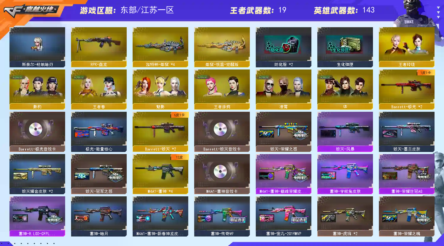 首页 > 租号大厅 > 穿越火线 > 电信区/江苏一区 > 六传说带影煞/灵眸*6烈枪娘+六炼狱/幻神6皮星神2皮带8把副武器爆破生化双全装