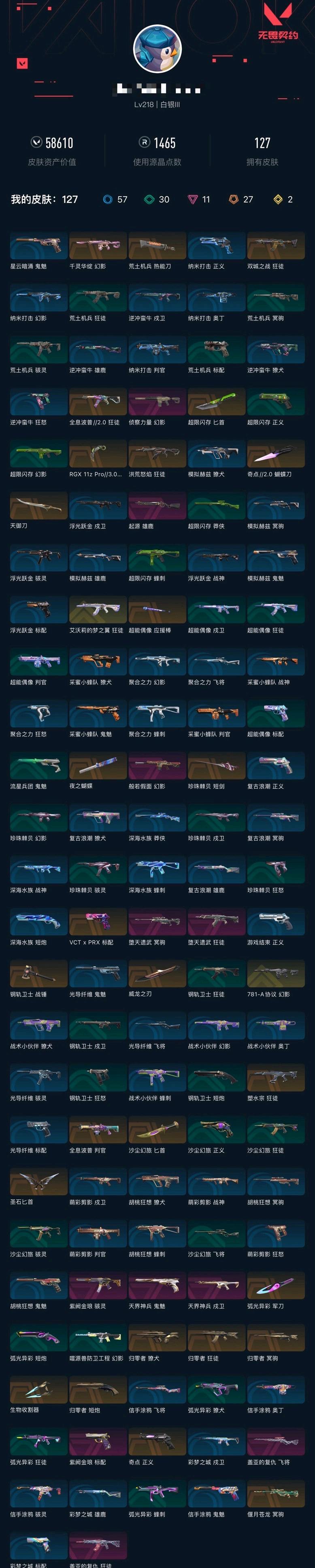 • 游戏区服:无畏契约-wegame / wegame / wegame