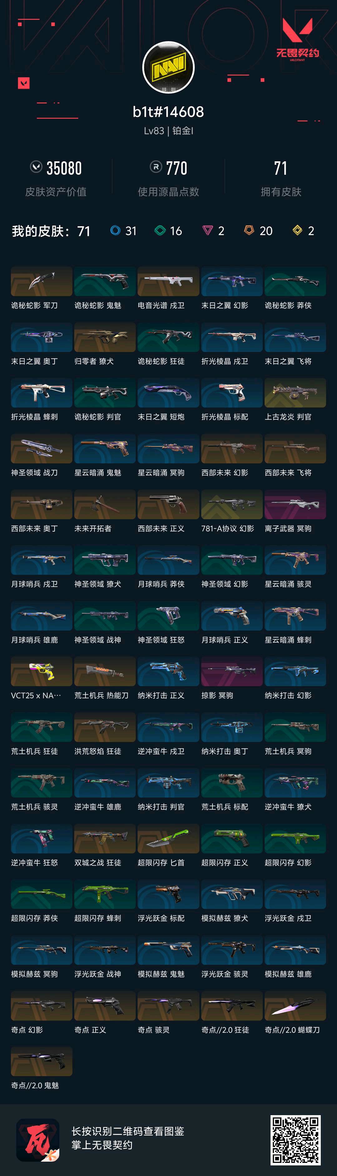 • 游戏区服:无畏契约-wegame / wegame / wegame