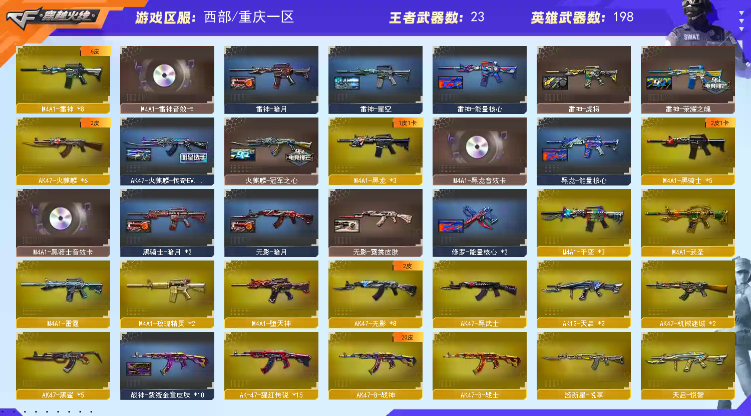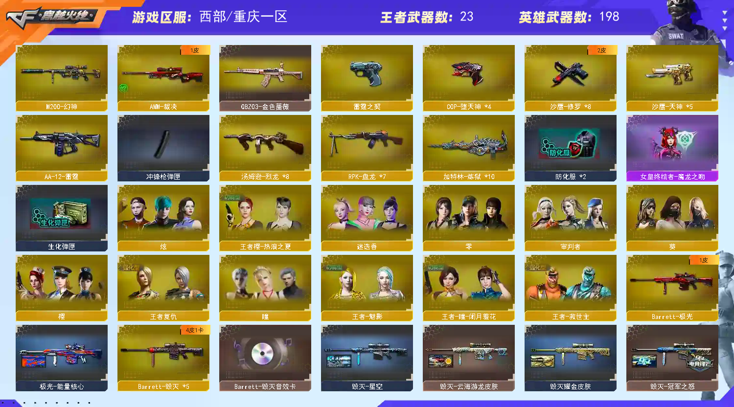 西部211v可排位15王者炫金、m200-幻神、6烈龙 6炼狱 6盘龙雷霆雷套*7cop堕天神*4