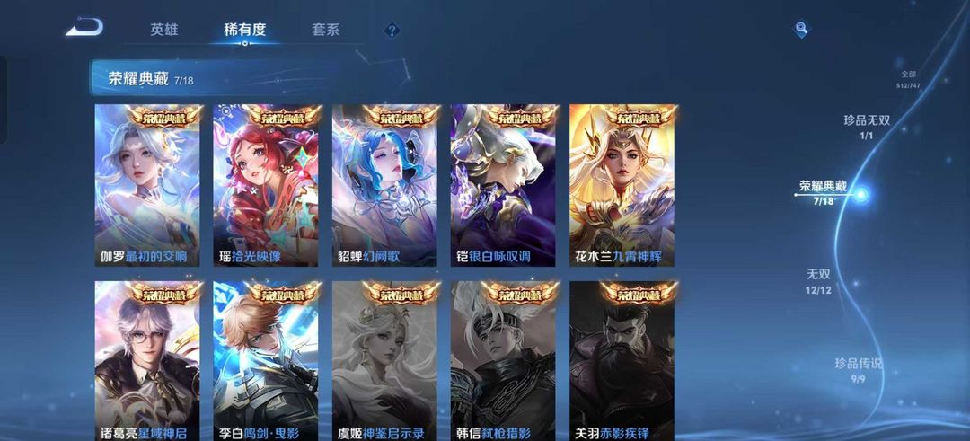 V10、543皮14水、吕布典藏-千魇归渊、愿照·九州拓、愿照·众生和、怪盗基德、伽罗星传说红枫、瑶典藏拾光映像、冥王哈迪斯、、龙年限定、齐天大圣