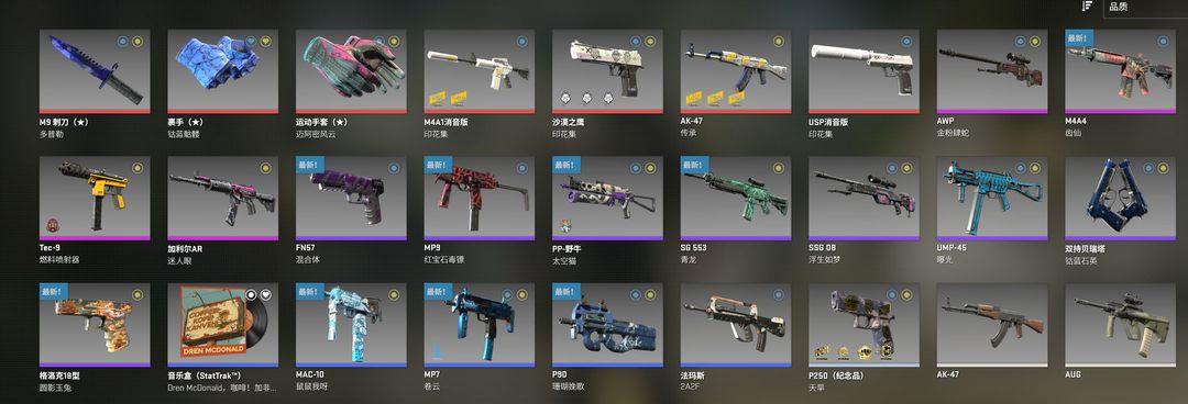 可完美新手❤蝴蝶刀❤迈阿密手套❤青花瓷AK镀铬大炮狙❤印花集全套