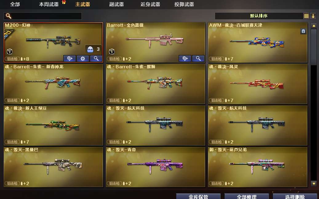拿去练手 显眼的只有m200幻神➕周瑜皮音效卡 冠军柯尔特 炽芒碟忍 雷神2皮2 汤姆逊 QBZ玫瑰精灵