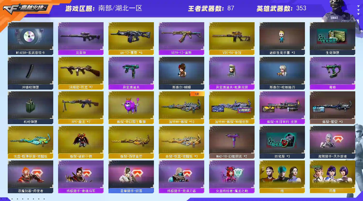• 游戏区服:穿越火线 / 电信区 / 湖北一区