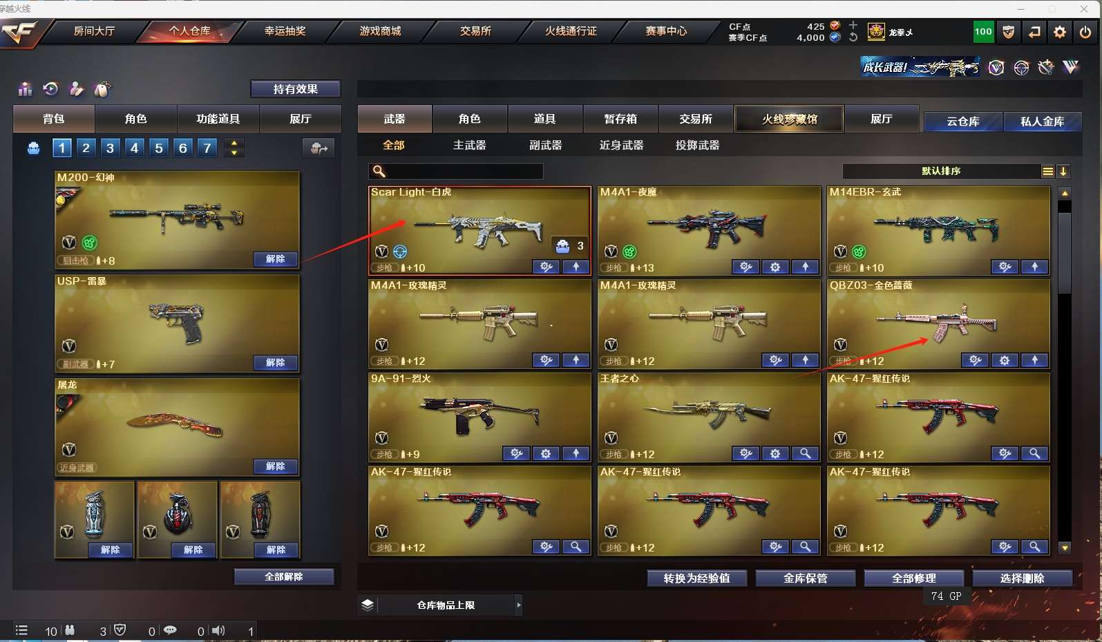 幻神多皮 生化6烈龙+毒蜂】 【m200-幻神+幻神-宠儿+幻神-ag17冠军+cfs2022】 【竞技荣光套+四防云悠悠+usp雷暴】 【王者幻神】 【传说光耀】 【白虎】 【qbz王者蔷薇】 【qbz金色蔷薇】 【武圣套】 【夜魔套】 【堕天神套】 【荣耀世冠套】 【火麒麟+音效卡+火麒麟-荣耀世冠ag+巅峰荣耀+火麒麟-even+火麒麟-冠军之心】 【黑龙+黑龙-冠军之武】 【雷神+音效卡+雷神-荣耀世冠ag+雷神-传奇n9+雷神-宠儿雷神-冠军之魄+雷神-荣耀之魄】 【黑骑士+音效卡+白马银呛+黑骑士-冠军之势】 【毁灭+音效卡】 【裁决】 【王者之心 王者冰魄】 【千变 无影 黑武士 天启 黑鲨 龙血 hk417朱雀 玄武 玫瑰精灵】 【生化 4炼狱 6烈龙 毒蜂 】 【15手呛 修罗*3 天神 usp雷暴 cop堕天神*2 柯尔特荣耀世冠*3】 【14近战 屠龙*2 龙啸 擎天 王者之锋】 【手雷 堕天神雷*7 夜魔雷*7 竞技荣光雷】 【挑战 致命乱世-超越max 宾冰征服者-超越max】 【四防 王者葵惊若翩鸿】 【角色 春 葵 零 凌霄 迷迭香 狐影 修道士】 【火麒麟音效卡 毁灭音效卡 雷神音效卡 黑骑士音效卡】 【猫猫手套】 【虎牙炫彩背包 炫彩背包;USP-雷暴,荣耀世冠-柯尔特,电竞教官-云悠悠,RPK-盘龙,QBZ03-金色蔷薇,M200-幻神,Scar Light-白虎,