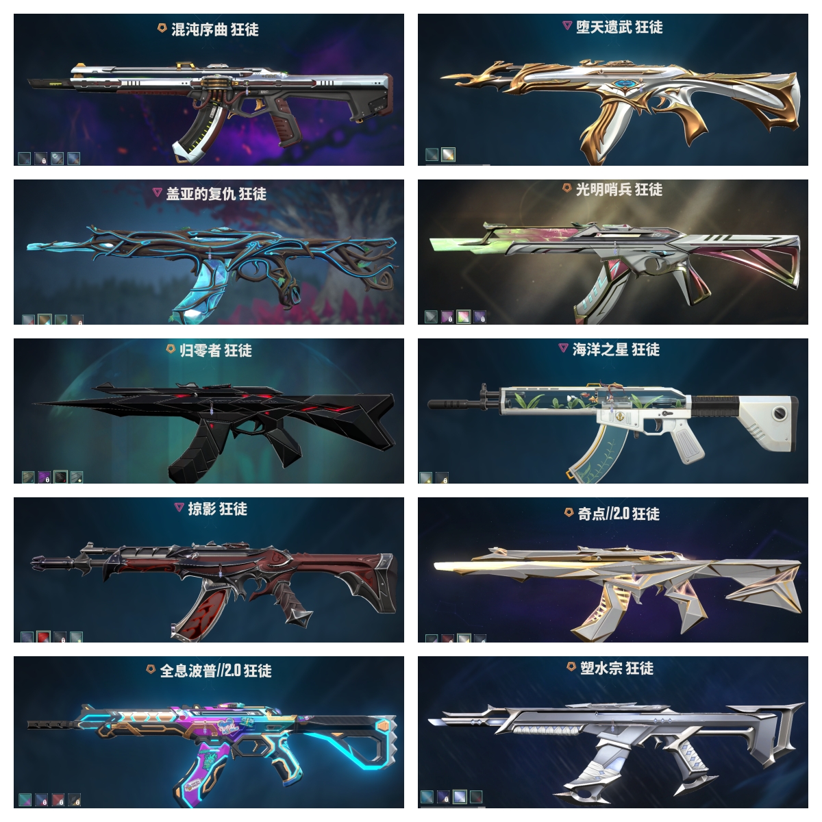 【拥有套装】堕天遗武套装(堕天遗武-狂徒,堕天遗武-冥驹,堕天遗武-骇灵,堕天遗武-标配,堕天遗武-仪式匕首)奇点2.0套装(奇点//2.0-狂徒,奇点//2.0-鬼魅,奇点//2.0-蝴蝶刀)归零者套装(归零者-獠犬,归零者-狂徒,归零者-冥驹,归零者-短炮,生物收割器)侦察力量套装(侦察力量-戍卫,侦察力量-幻影,侦察力量-骇灵,侦察力量-鬼魅,侦察力量-蝴蝶刀)耀鳞威龙套装(耀鳞威龙-狂徒,耀鳞威龙-鬼魅,威龙之刃)源能者娱乐系统套装(源能者娱乐系统-幻影.源能者娱乐系统-冥驹,源能者娱乐系统-獠犬,源能者娱乐系统-鬼魅,街机高手)掠影套装(掠影-狂徒,掠影-冥驹,掠影-戍卫,掠影-正义,影刃)