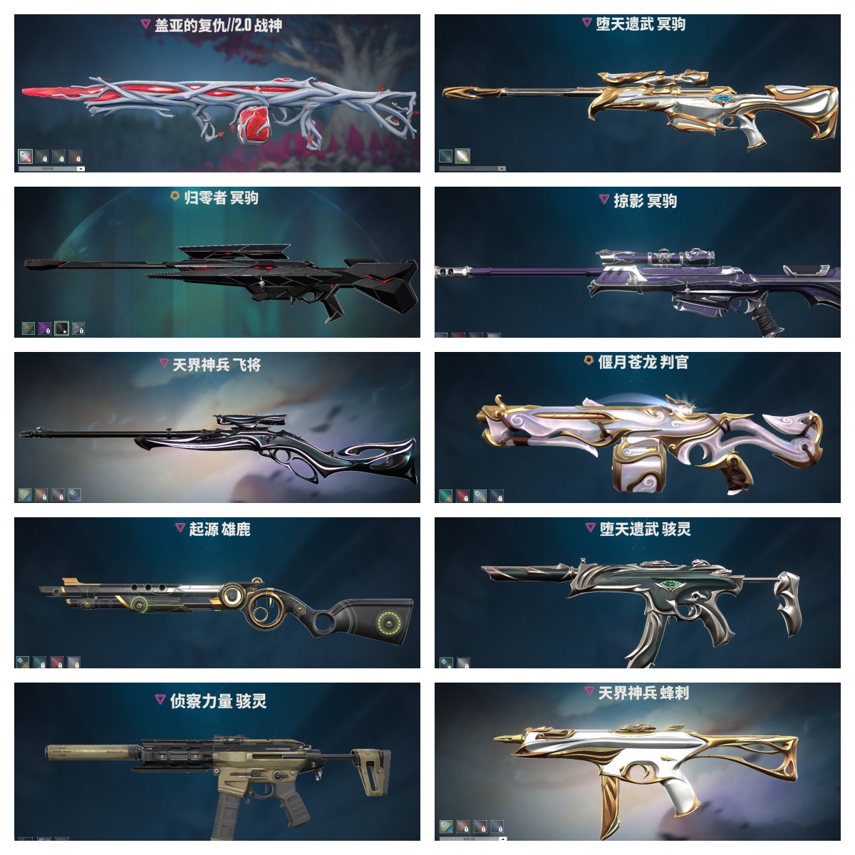 【拥有狙击枪】天界神兵-飞将,荒土机兵-冥驹,超限闪存-莽侠,沙尘幻旅-飞将,模拟赫兹-冥驹,聚合之力-飞将,战术熊与伙伴们-飞将,纤云弄巧-莽侠,深海水族-莽侠,复古浪潮-冥驹,光导纤维-飞将,胡桃狂想-冥驹,信手涂鸦-飞将,