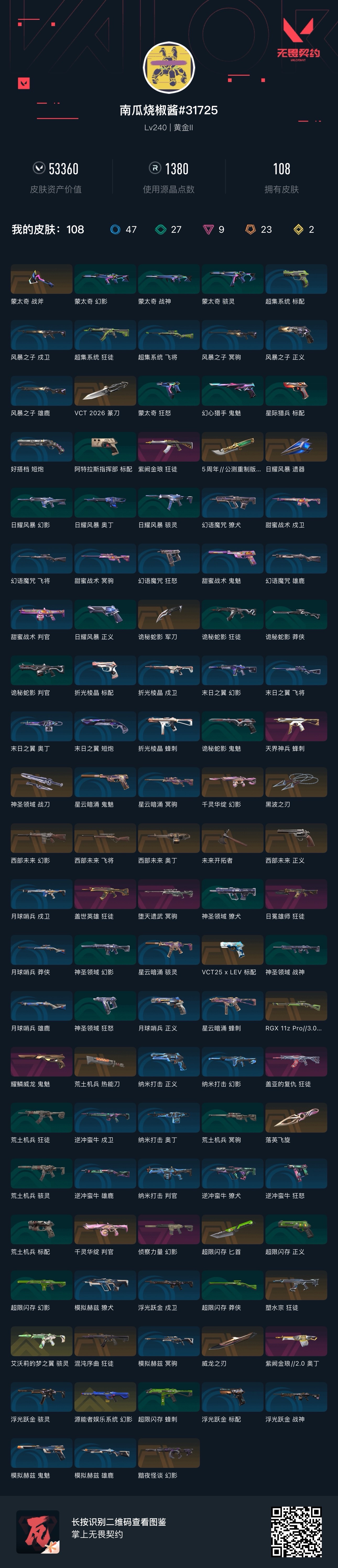 • 武器皮肤数量: 108