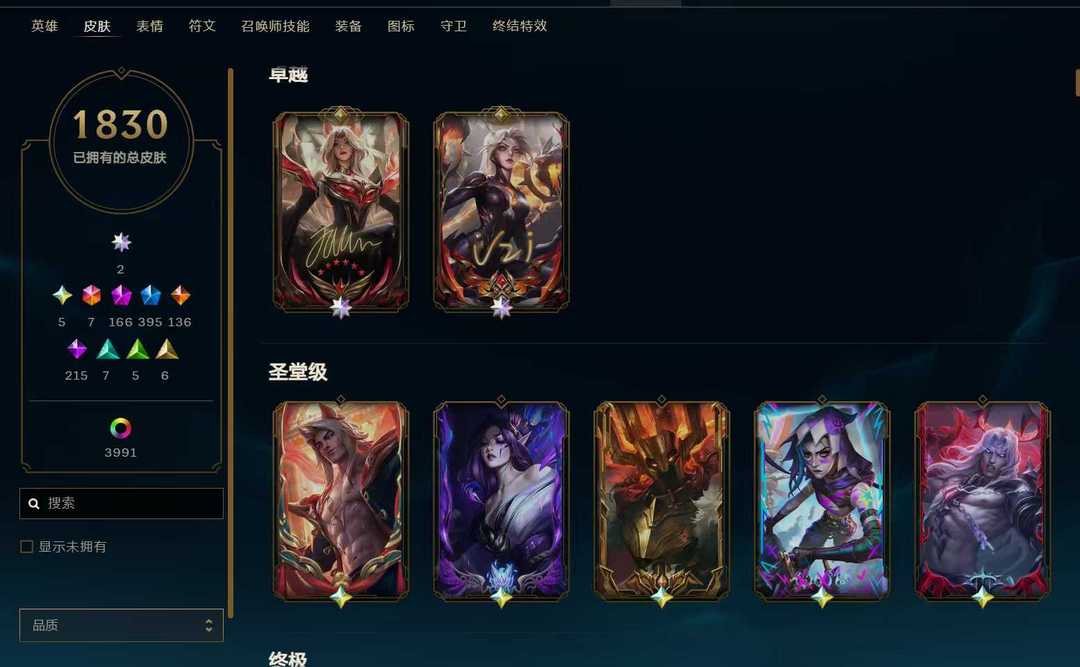 皮肤帝🌺 真实1288皮肤至臻全有 海克丝全有 5色龙虾齐 摄魂VN花木兰原计划 电玩情人节