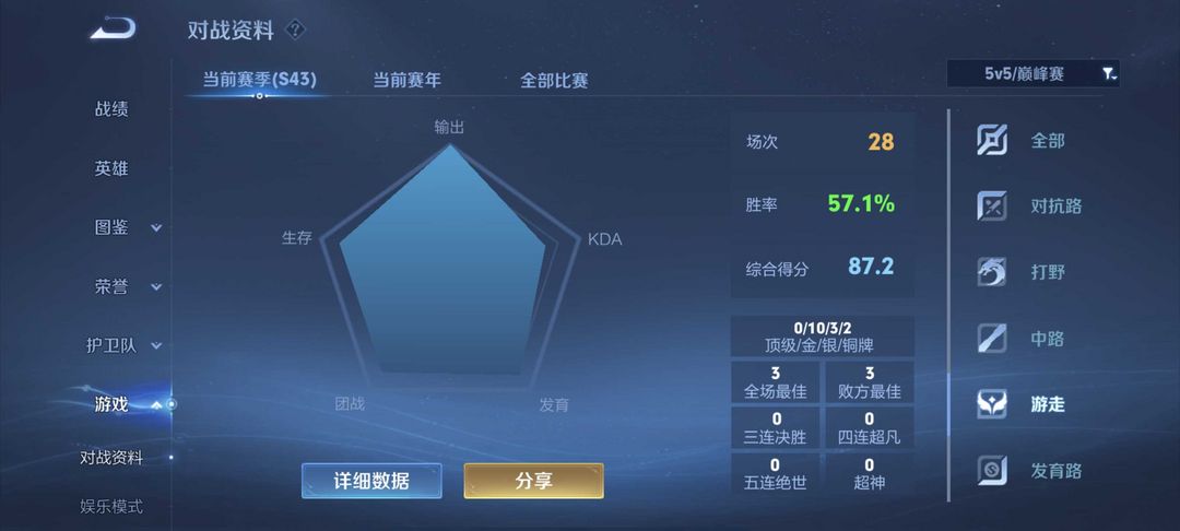 女号正式服无双贵族,现省级瑶省级游走86段巅峰1656,禁巅峰历史国6瑶,全国季军战队85评
