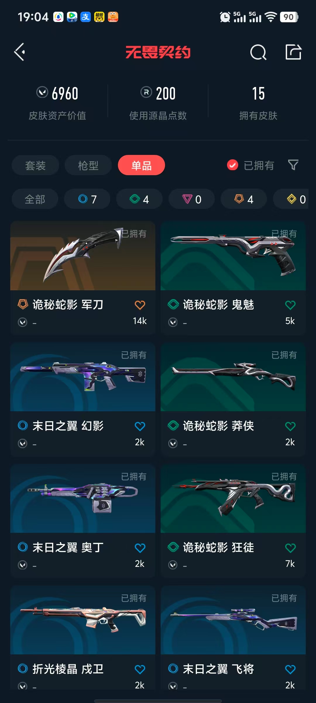 首页 > 租号大厅 > 无畏契约-wegame > wegame/wegame > 英雄12 武器皮肤数量15 VCT2020爪刀 弑影者狂徒 诡秘蛇影 军刀 混沌序曲 狂徒