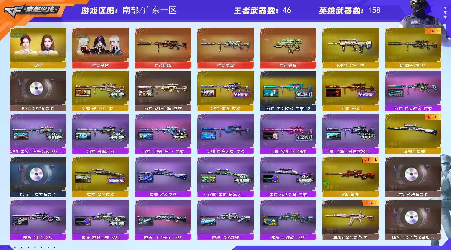 【商品标题】:南部广东一区-171V-可二次实名-【Lv.102-荣耀元帅】-【段位:荣耀之巅】 【稀有武器】:传说灵眸/传说幽瞳/传说破晓/M200-幻神(3)/Kar98K-星神/VSK-94-金蚀/G36C-幻影/ScarLight-白虎/M4A1-青龙/HK417-朱雀/QBZ03-天罚/COP357-幻灵(4)/柯尔特无冕之王/柯尔特-荣耀世冠白鲨2023/修罗-古蛇迷踪/荣耀世冠-柯尔特/COP357-雷霆王者-觉醒版(2)/柯尔特-冠军之特(3)/金色蔷薇-古蛇迷踪/QBZ03-金色蔷薇(2)/AK47-火麒麟(2)/M4A1-黑龙/M4A1-雷神(5)/M4A1-黑骑士/AK47-黑武士/荣耀世冠-火麒麟/Barrett-毁灭/AWM-裁决/加特林-炼狱/炽芒蝶刃(2)/斩神刀-雷暴/幻灵之锋(4)/擎天-竞技荣光 【王者武器】:QBZ-03-王者蔷薇-觉醒版/王者芳薇-觉醒版/王者凰鸣-觉醒版 【热门角色】:传说影煞/电竞教官-云悠悠/关小雨/荒漠琉璃/晴雅/司雨/研/鹰/月兔特工/隼/奇洋探员/蛇隐宗/王者春/王者潘多拉/王者沙漠玫瑰/王者影豹/王者云悠悠/王者炫/炽天使/潘多拉-X/幽/潘多拉 【热门音效卡】:M200-幻神音效卡/Kar98K-星神音效卡/AWM-裁决音效卡/Scar Light-白虎音效卡/QBZ03-金色蔷薇音效卡/QBZ03-天罚音效卡/M4A1-雷神音效卡/M4A1-黑骑士音效卡 【热门皮肤】:幻神-AG-CFPLS24冠军皮肤/幻神-传奇欧欧皮肤(2)/幻神-星耀皮肤/幻神-荣耀世冠白鲨2023皮肤/幻神-宠儿-2021MVP/幻神-星火小队签名臻藏版皮肤/幻神-冠军之幻/幻神-电流骇客皮肤/幻神-动感闪耀皮肤/幻神-丹凤/幻影-破浪逐光皮肤/白虎-白鲨-CFPLS23冠军/裁决-巅峰荣耀皮肤/雷神-HeartShot皮肤/QBZ03-CFS2024皮肤(2)/qbz虎牙皮肤/金色蔷薇-破浪逐光皮肤/屠龙-星耀皮肤/星神-破竹皮肤/金色蔷薇-纸灯龙皮肤/毁灭-星耀皮肤/金色蔷薇-量子蔷薇皮肤/火麒麟-HeartShot皮肤/雷神-高能霹雳 皮肤/QBZ03-传奇宠儿/屠龙-星火燎原/QBZ03-巅峰荣耀皮肤/裁决-羽掣皮肤/Kar98K-星神-冠军之星皮肤/雷神-R.LGD-CFPLS18冠军/星神-巅峰荣耀 皮肤/QBZ03-冠军之薇/白虎-霓虹机甲 皮肤/屠龙-破浪逐光皮肤/星神-璀璨皮肤/裁决-流光秘银/火麒麟-大唐荣光/炽芒蝶刃-破浪逐光皮肤/屠龙-巅峰荣耀皮肤/白虎-电玩粉兔皮肤/传奇石头-横秒之巅/雷神-传奇N9/ScarLight-白虎-暗星/黑骑士-AG-S4冠军典藏/M4A1-雷神-CFS2019/屠龙-荣耀之锋/金色蔷薇-枪娘阿敏皮肤/龙啸-冠军之啸(2)/炽芒蝶刃-冠军炽芒皮肤/雷神-荣耀之魄 【其他亮点】:斯泰尔-蝴蝶/Knife-冠军之刃(3)/白虎-九尾白狐/MK5-炽火炎龙/异变清道夫/Scar Light-马枪/贝雷塔687-射手座/黄金猫猫手套-白鲨/烟雾弹-荣耀世冠白鲨2023(2)/超核名片 (截图展示段位不代表实际段位,如赛季更新等不可抗拒因素发生变化,其余道具看截图或咨询客服);柯尔特-无冕之王,USP-雷暴王者,荣耀世冠-柯尔特,柯尔特-荣耀世冠白鲨2023,柯尔特-冠军之特,炽芒蝶刃,Knife-冠军之刃,