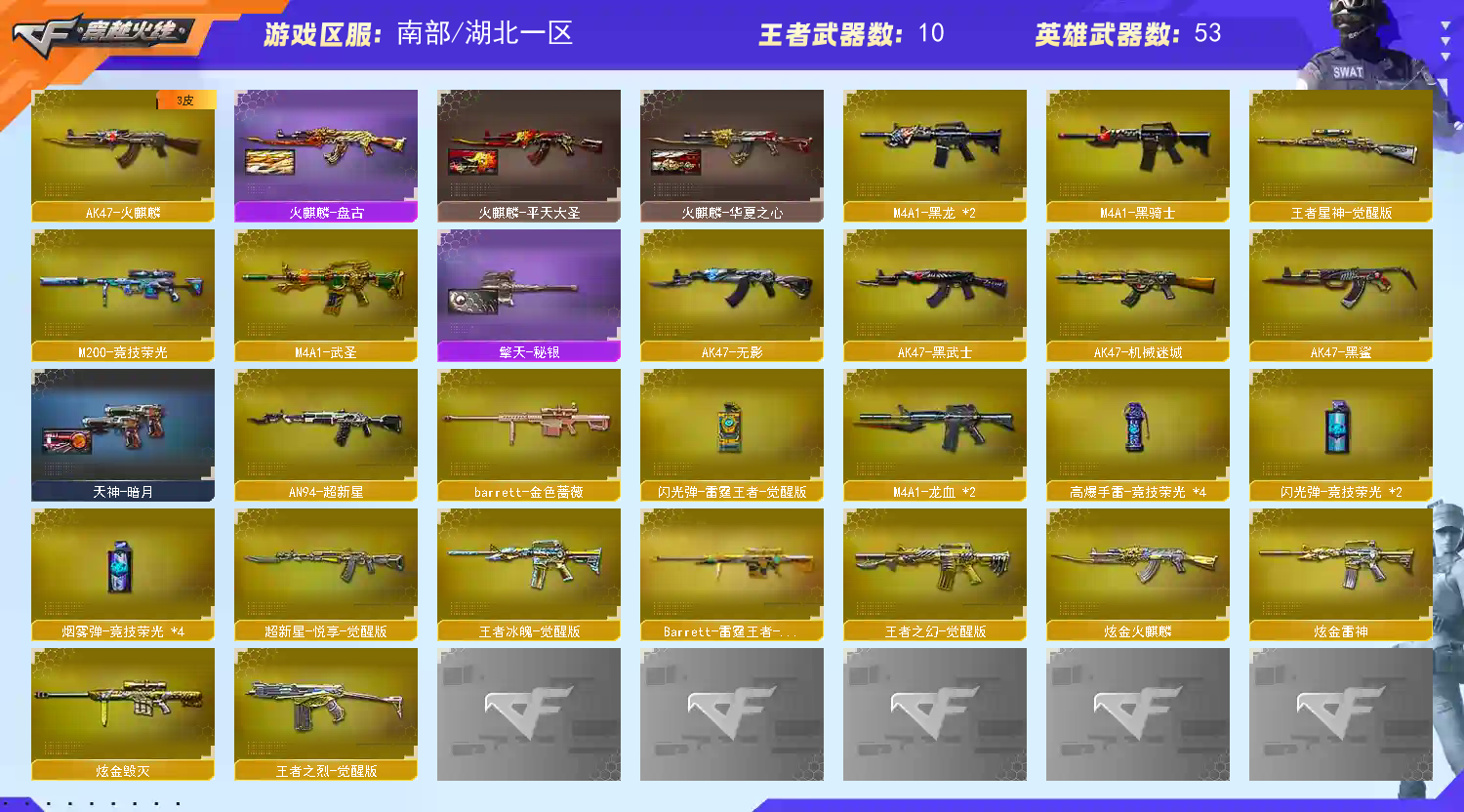 • 游戏区服:穿越火线 / 电信区 / 湖北一区