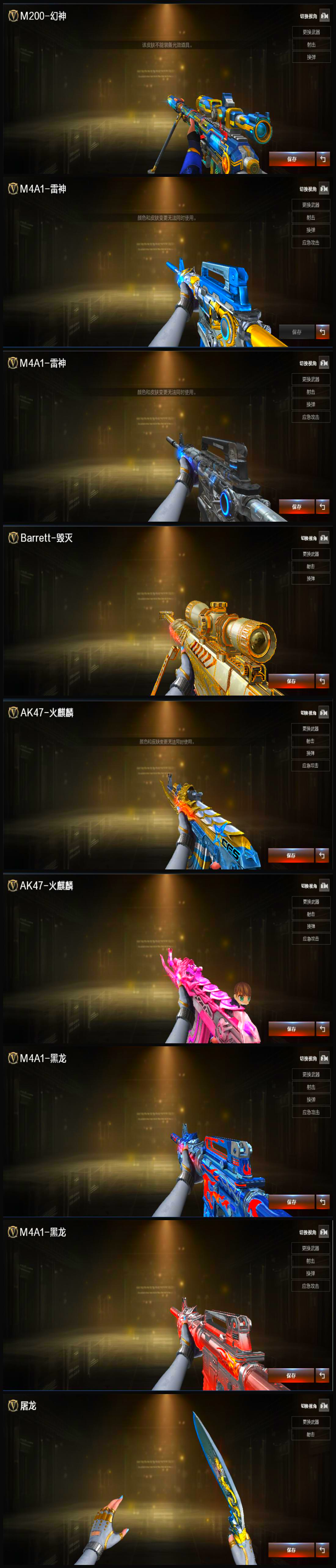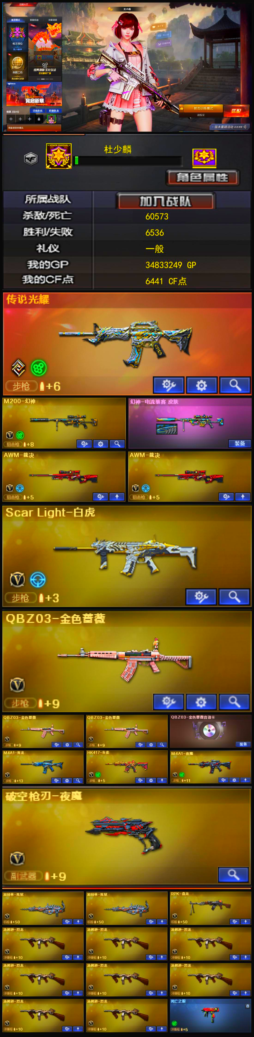 可排位117V/M200-幻神+电流骇客/传说光耀/8烈+QBZ蔷薇带卡+白虎+朱雀+青龙+夜魔套;RPK-盘龙,QBZ03-金色蔷薇,M200-幻神,Scar Light-白虎,