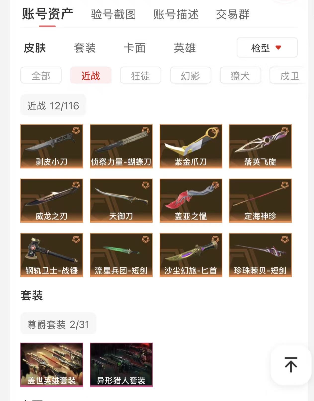 ❤️❤️❤️账号价值较大,已做大额虚拟资产备案,开挂盗号等行为报案处理,请不要以身试法。 ❤️❤️❤️禁止游戏内挂机违者拉黑公示,喜欢本账号请点收藏★方便下次租用,谢谢光临惠顾!;紫金爪刀,剥皮小刀,威龙之刃,盖亚的复仇 狂徒,洪荒怒焰 狂徒,紫阙金琅 狂徒,天界神兵 戍卫,