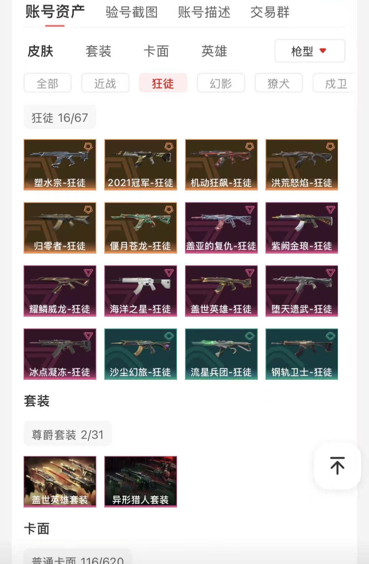 首页 > 租号大厅 > 无畏契约-wegame > wegame/wegame > 已备案禁止开挂❤️9w库存21冠套❤️剥皮紫金爪刀落英威龙❤️塑水宗盖亚紫金16把狂徒❤冻结等3分钟