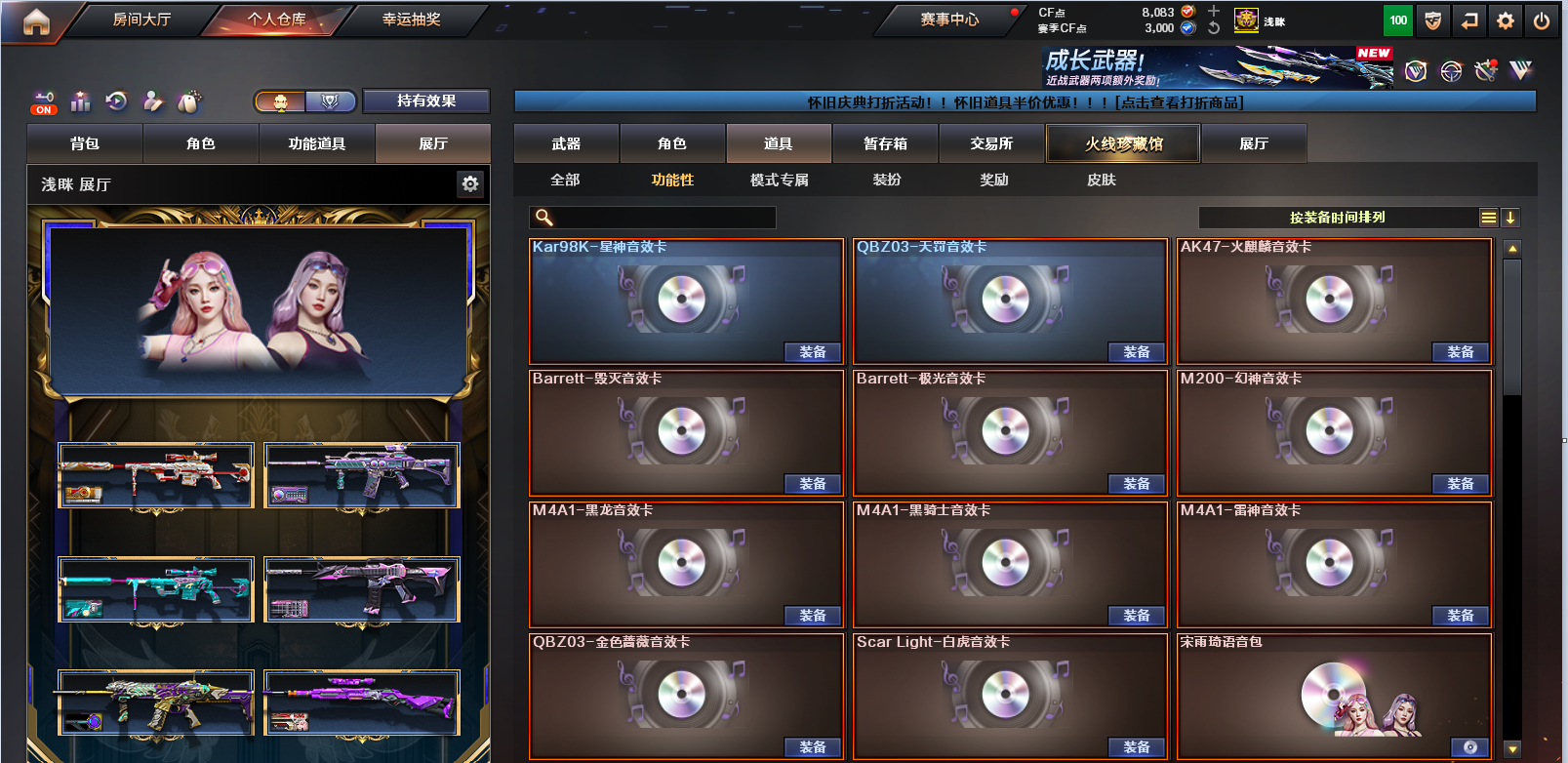 首页 > 租号大厅 > 穿越火线 > 网通区/河南一区 > 星神幻神s24皮音效卡三件套⭐天戎⭐G36C-宋雨琦⭐白虎⭐蝶刃⭐蝴蝶6烈⭐多音效卡多装饰⭐看图