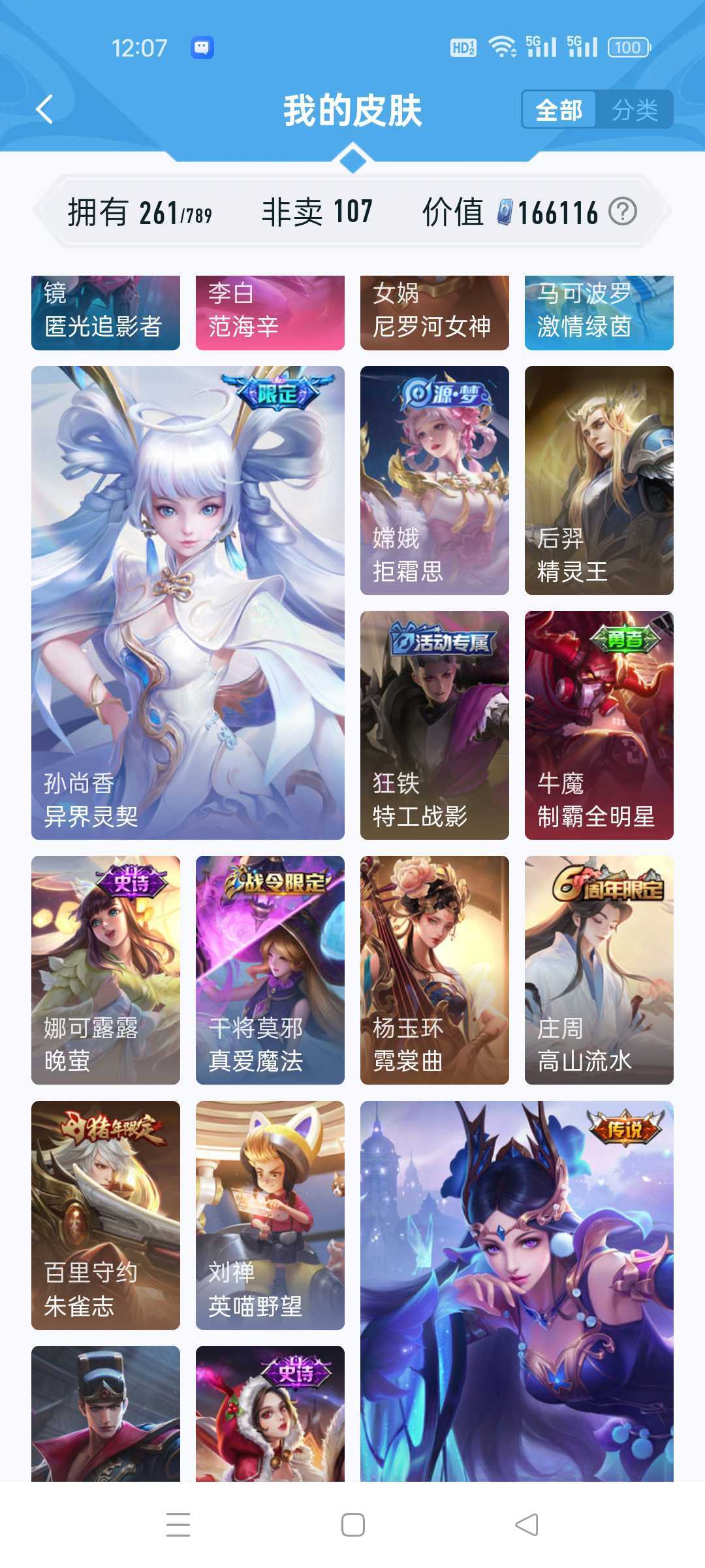 扫码上号看最后一张图🔥极品V10🔥524皮-满典藏🔥七夕限定·鹤归松栖🔥瑶-真我赫兹🔥妄想奇谈🔥弑枪猎影🔥11个星传说🔥传说天幕🔥商城已清空